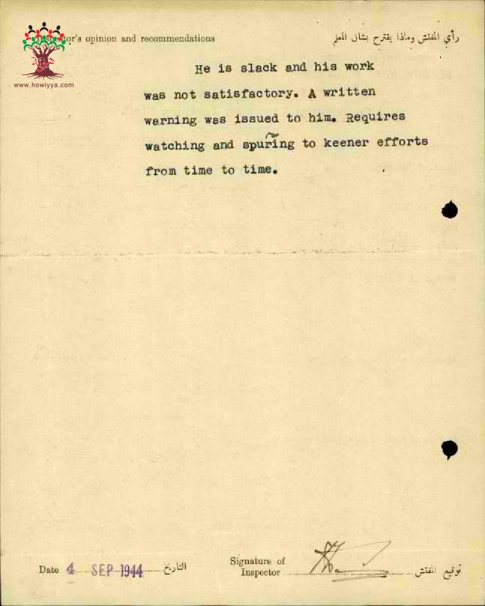 رأي المفتش العام بالمعلم احمد عمر موسى مدرسة فراضية - صفد