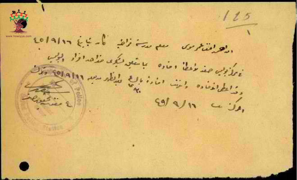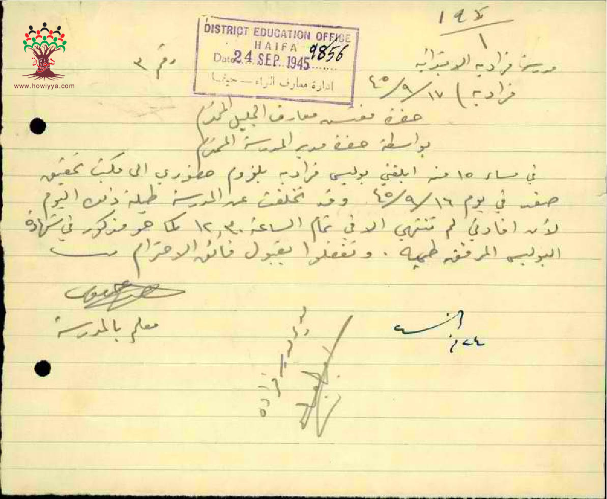 شهادة المعلم احمد عمر موسى في قسم البوليس - صفد - مدرسة فرادة
