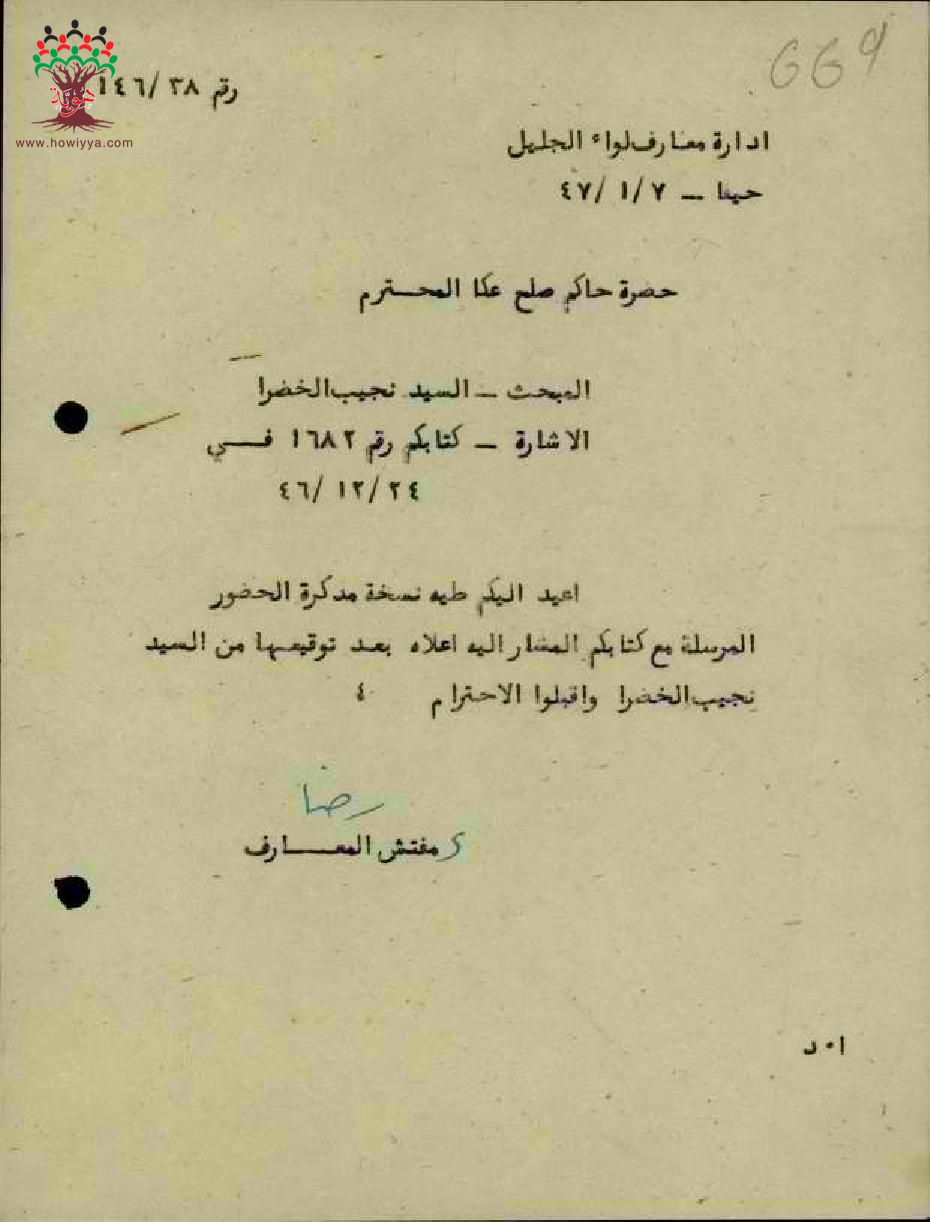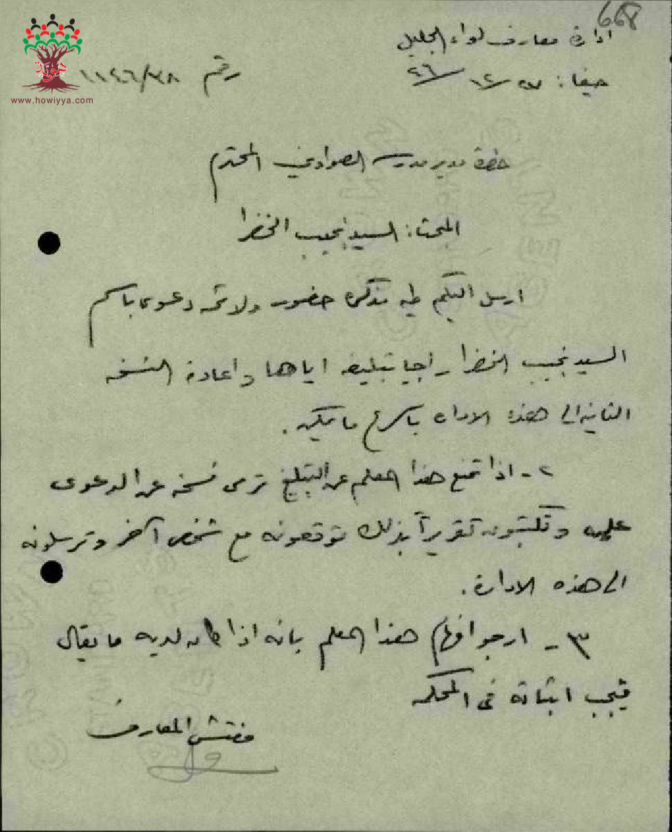 مجموعة رسائل بخصوص مذكرة حضور محكمة للمعلم نجيب الخضرا