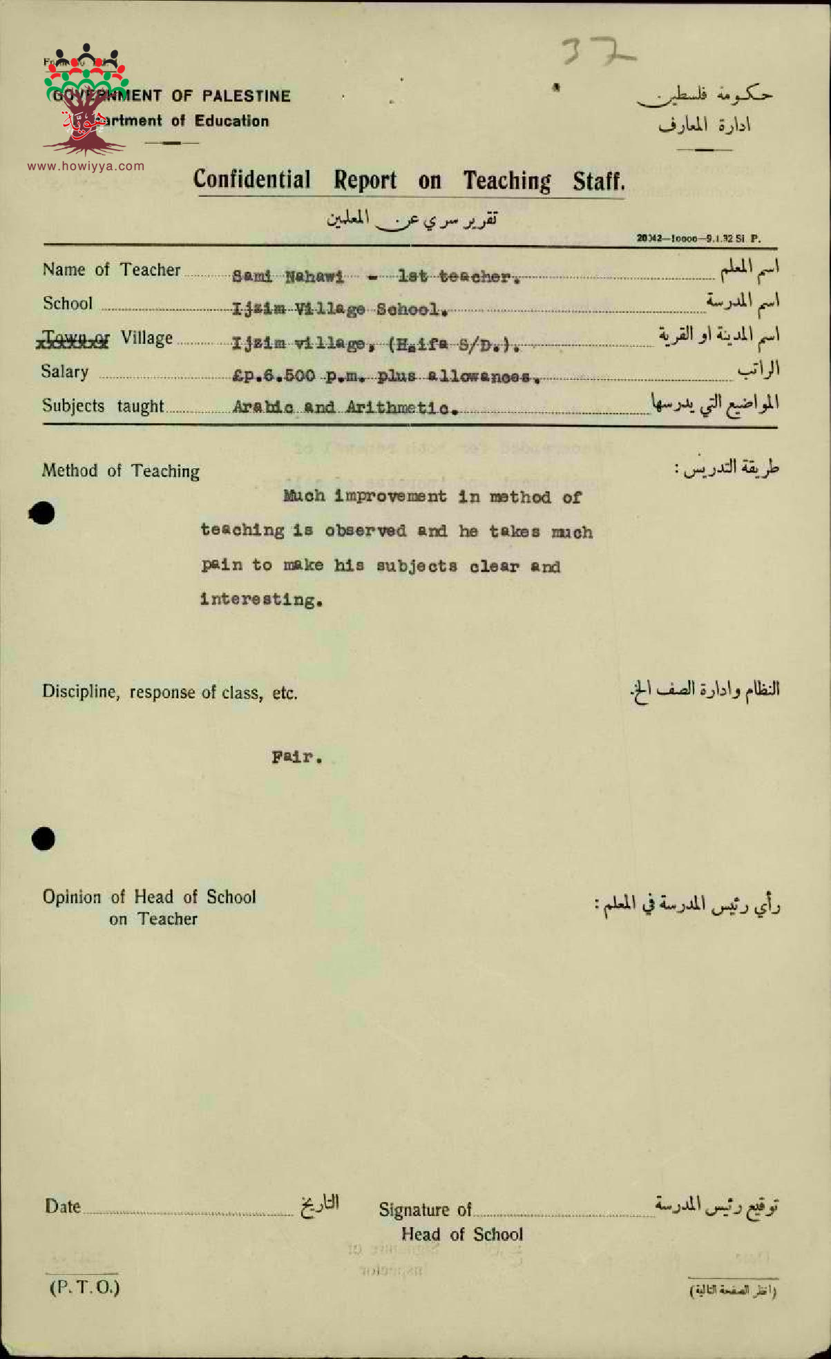رأي مدير مدرسة اجزم بالمعلم المعلم سامي سعيد النحوي - صفد - مدرسة اجزم