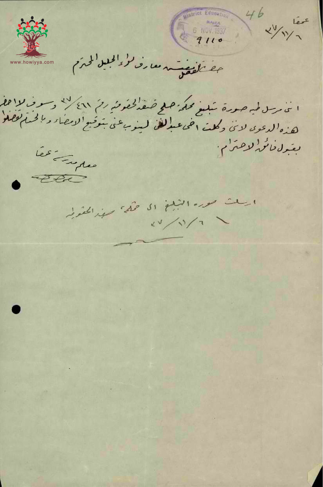 توكيل المعلم سامي سعيد النحوي اخيه عبد العني للحضور دعوى المحكمة - صفد