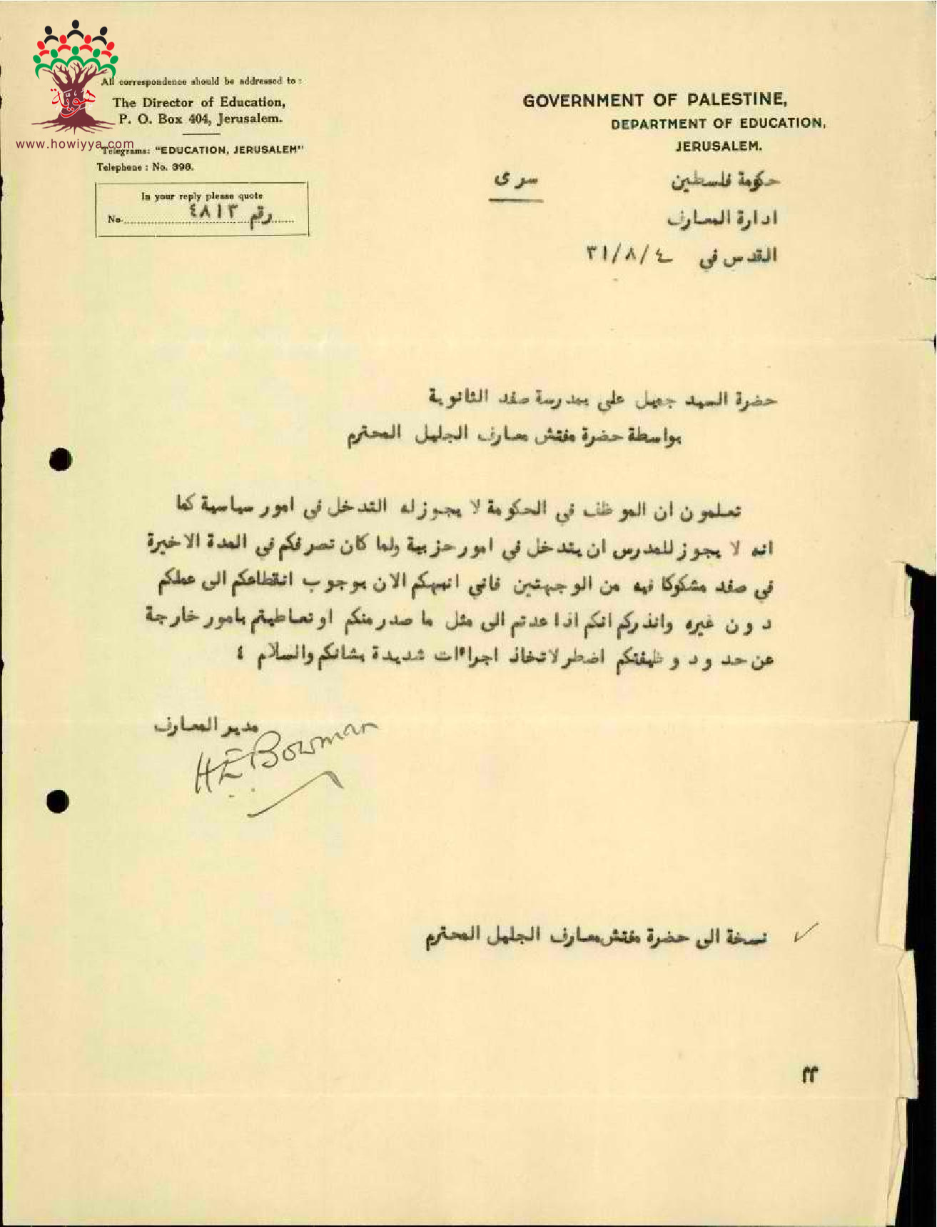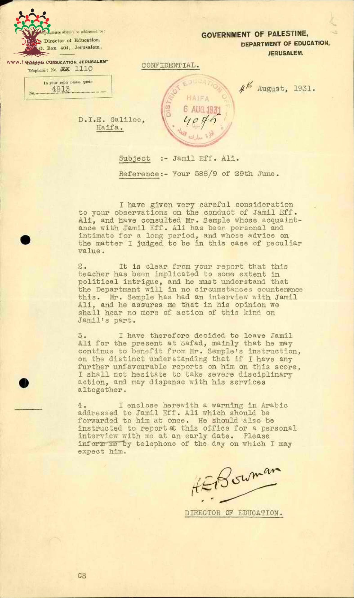 مجموعة رسائل بخصوص انذار موجه للمعلم جميل علي بعدم التدخل السياسي أو الحزبي