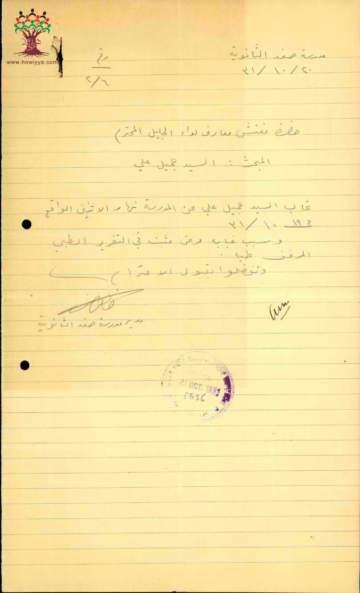 مجموعة رسائل وتقارير طبية بخصوص تغيب المعلم جميل علي