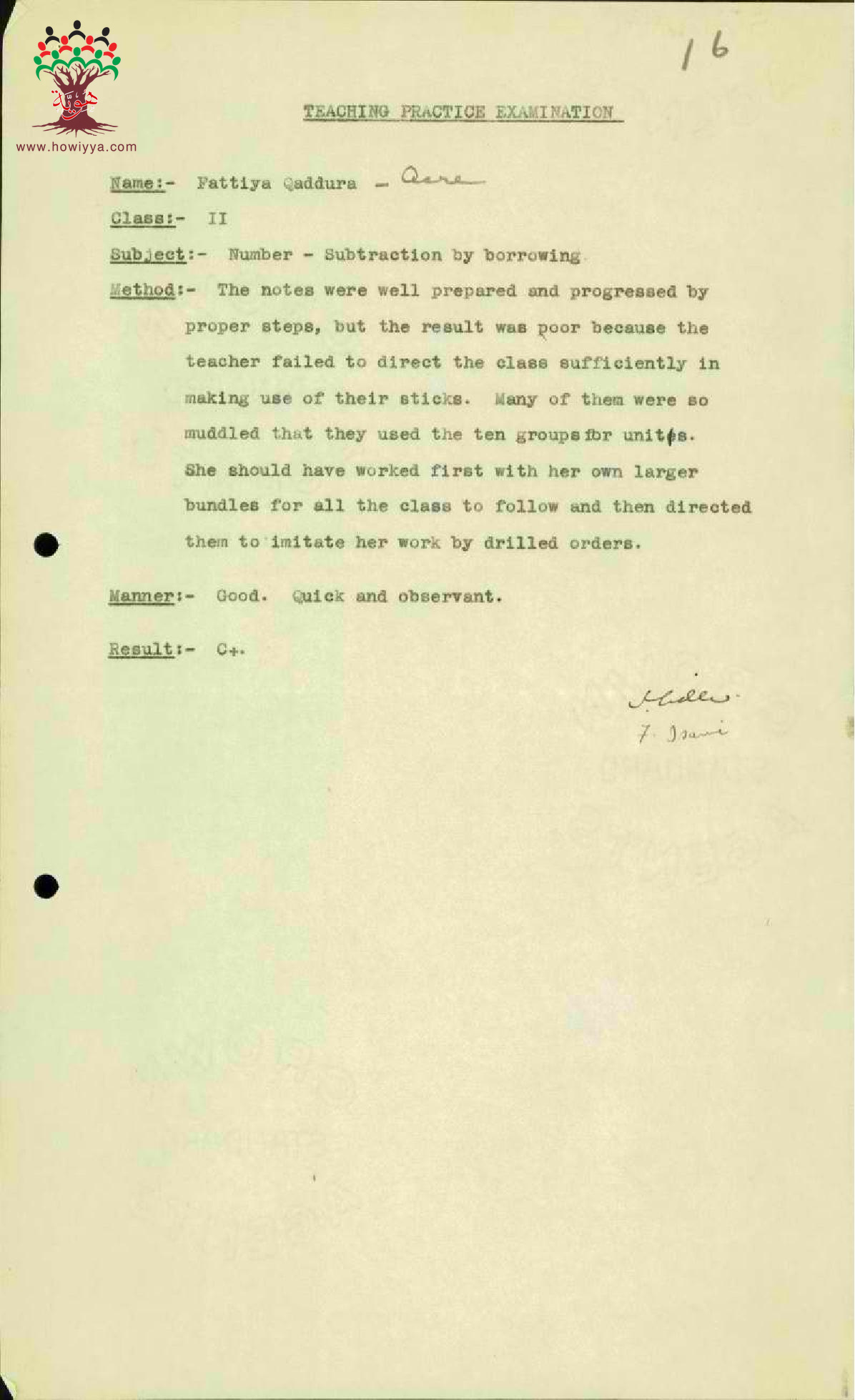 نتيجة الفحص العملي للمعلمة فتية قدورة