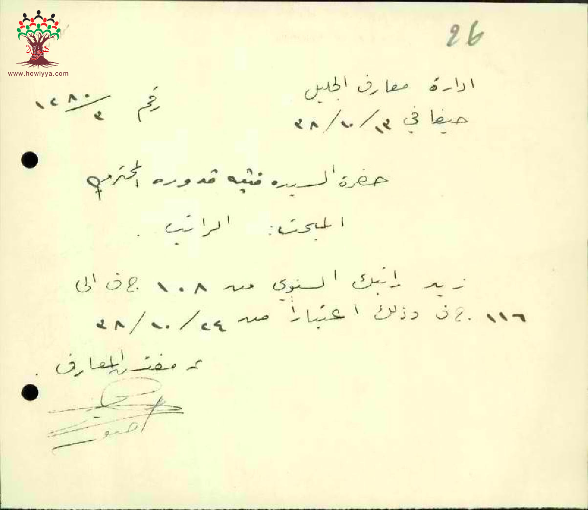 رسائل بخصوص زيادة راتب المعلمة فتية قدورة السنوية