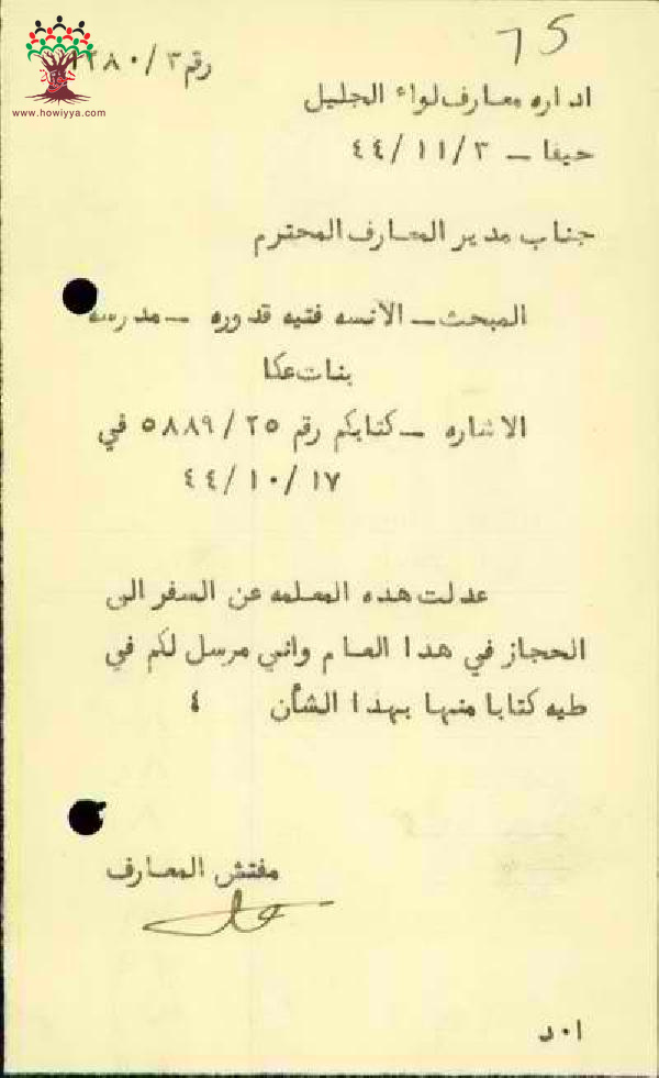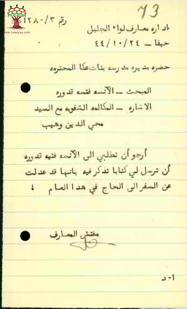 رسائل بخصوص عدول المعلمة فتية قدورة عن الذهاب الى الحج