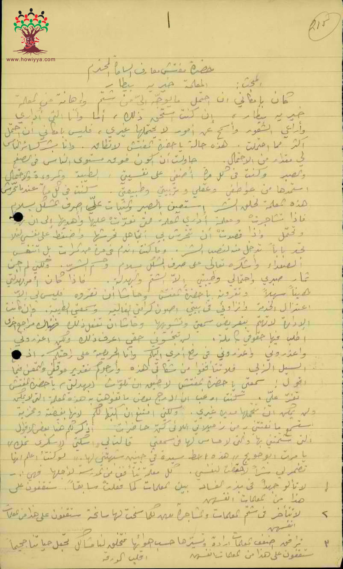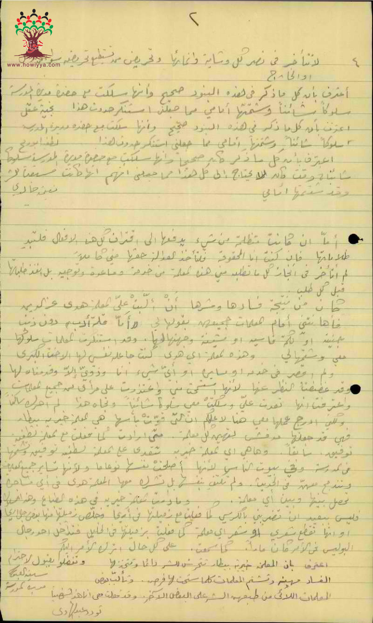 رسالة من مديرة مدرسة جنين الى مفتش المعارف تشتكي فيها على سلوك المعلمة خيرية بيطار