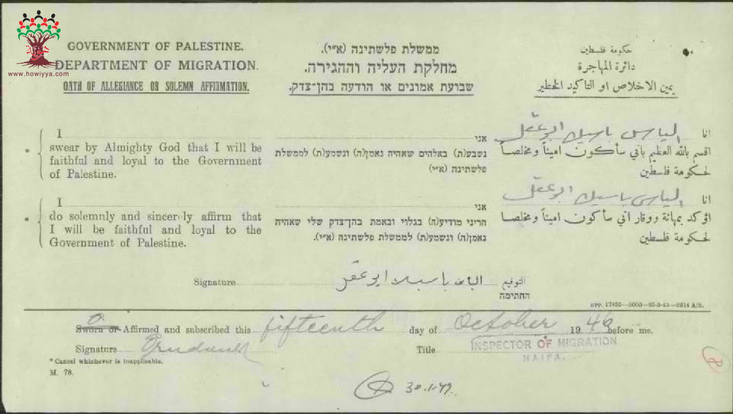 إلياس أبو عقل يوقع على (يمين الإخلاص) للحصول على الجنسية الفلسطينية