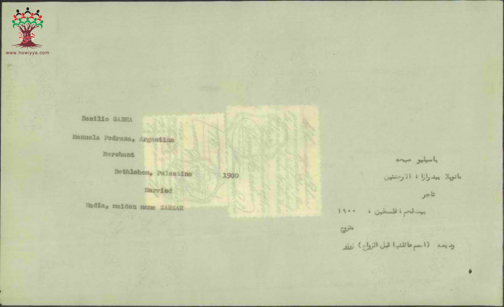 ورقة بيانات باسيليو صبحة المرفقة بطلب الجنسية