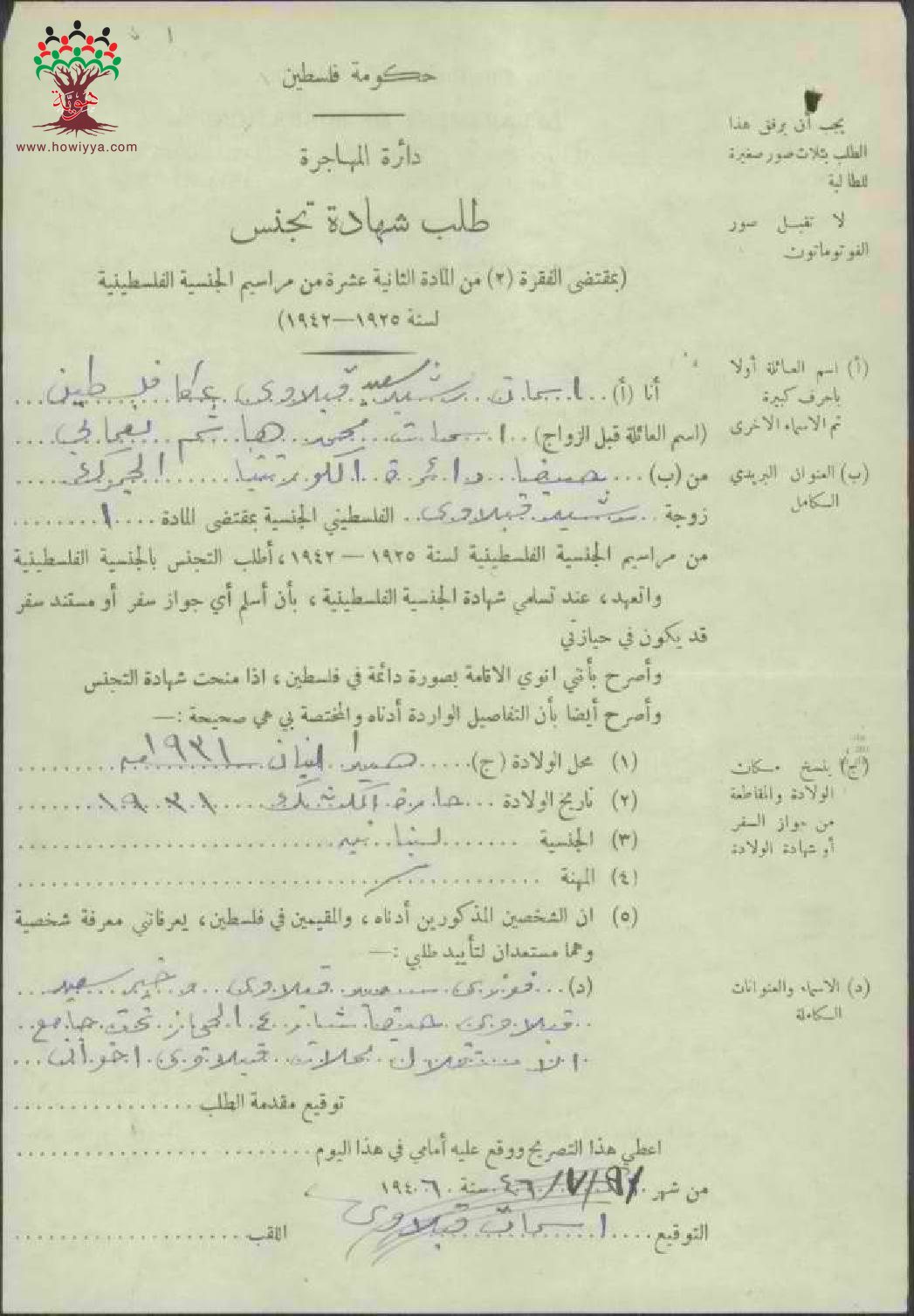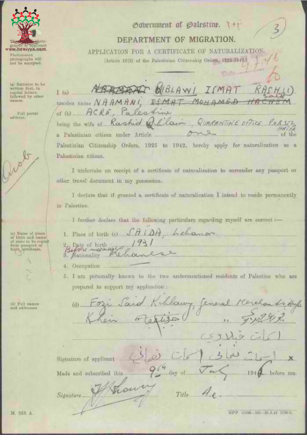 طلب الجنسية الفلسطينية-إسمات قبلاوي نعماني-عكا/صيدا-لبنان