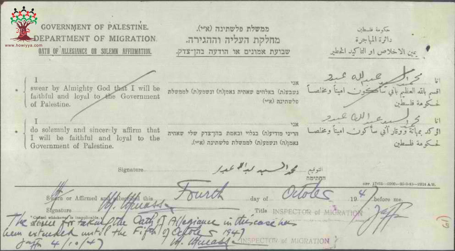 محمد سيد عبده يوقع على (يمين الإخلاص) للحصول على الجنسية الفلسطينية