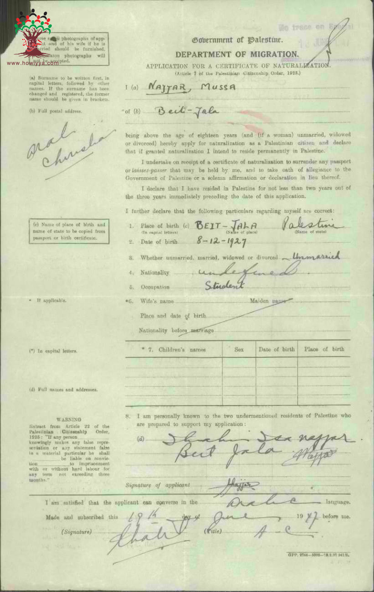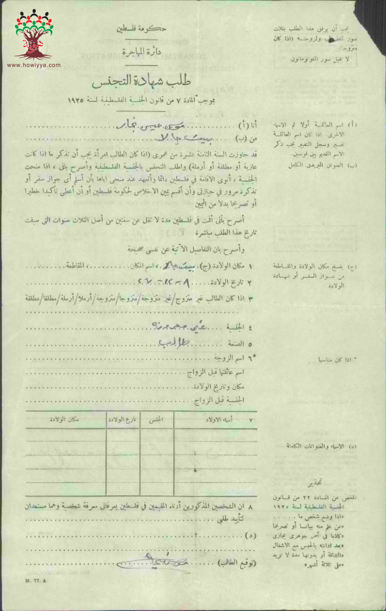 طلب الجنسية الفلسطينية-موسى نجار-بيت جالا
