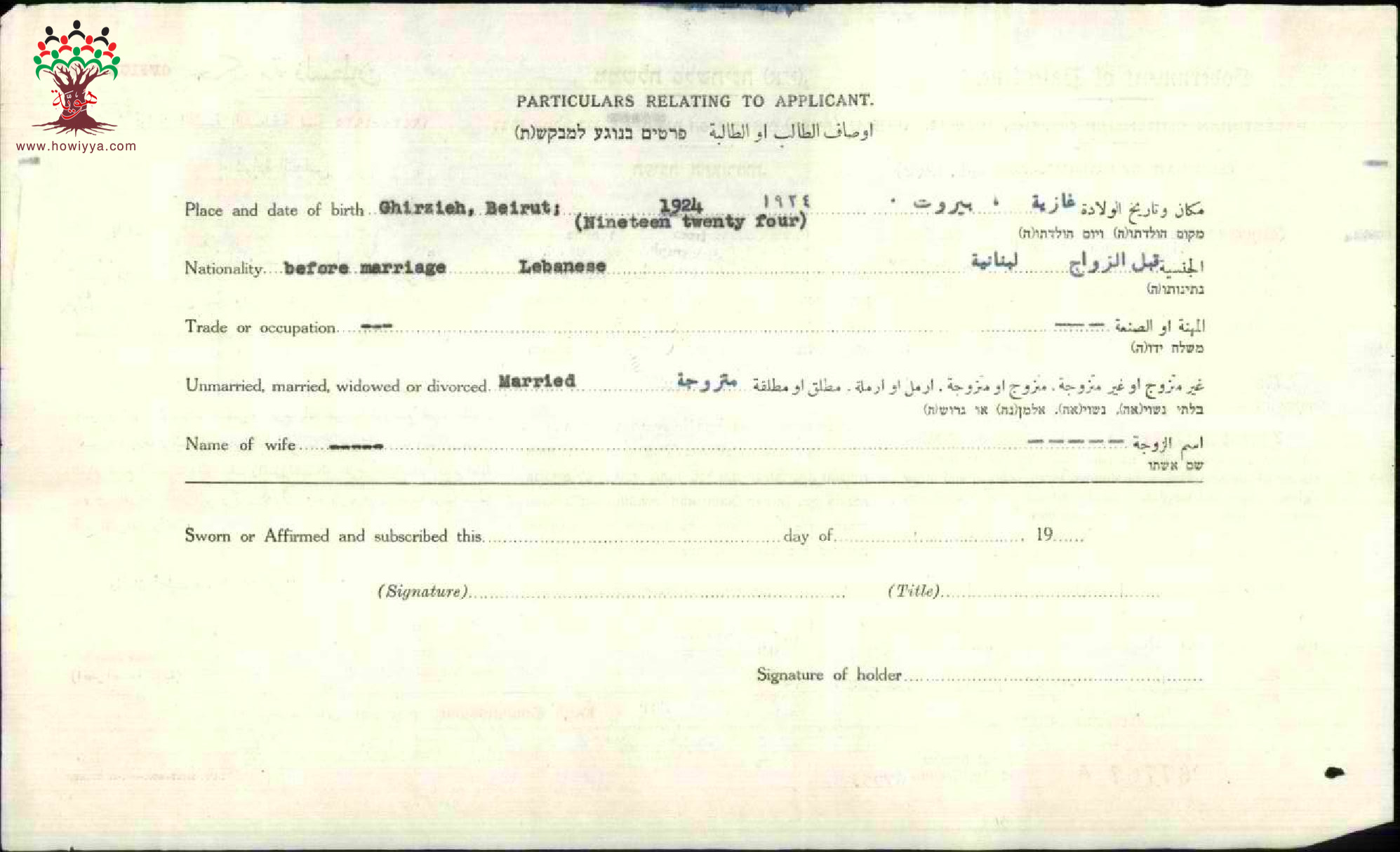شهادة الجنسية الفلسطينية ل فاطمة فروخ حمو