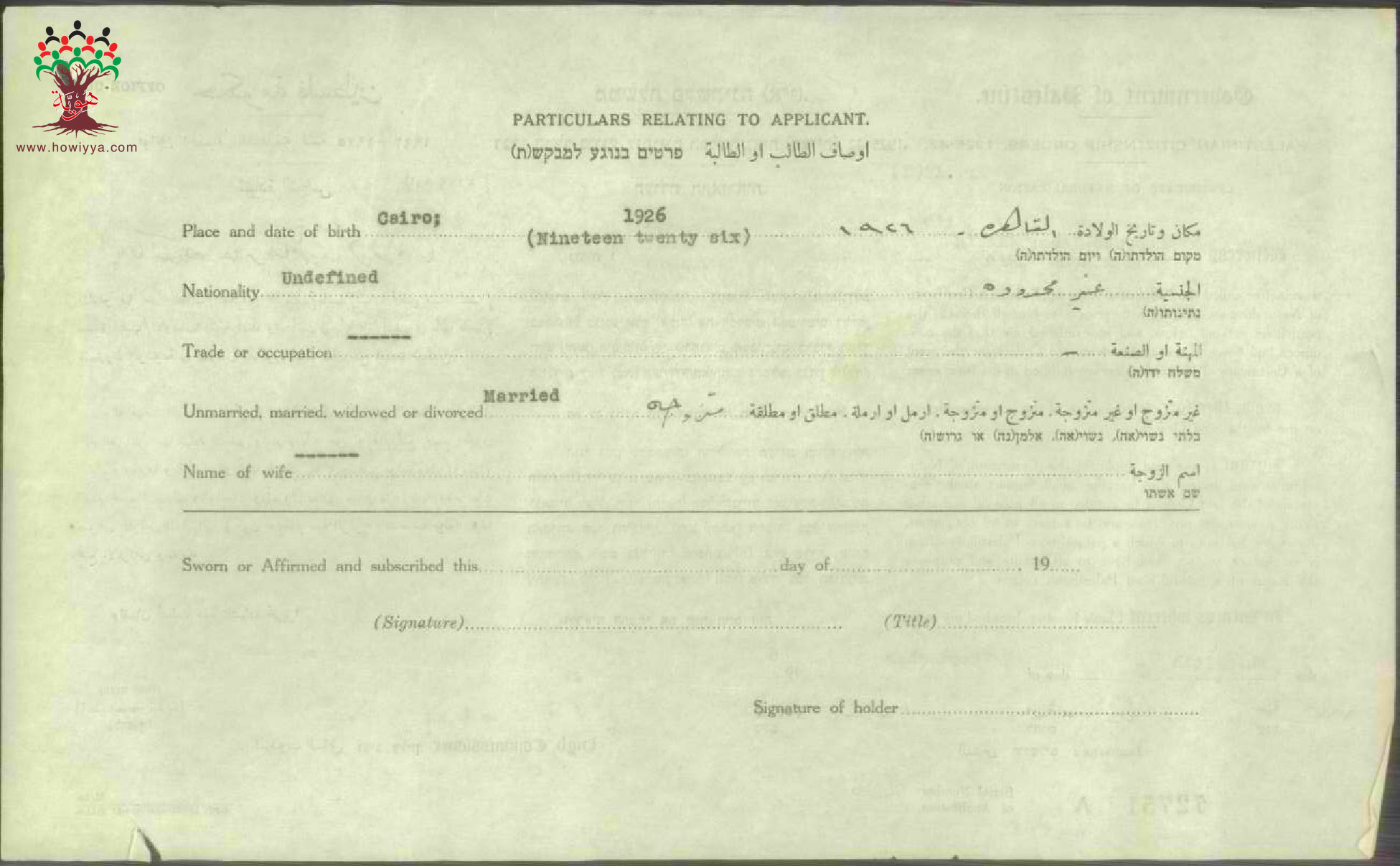شهادة الجنسية الفلسطينية ل مبروكة مختار