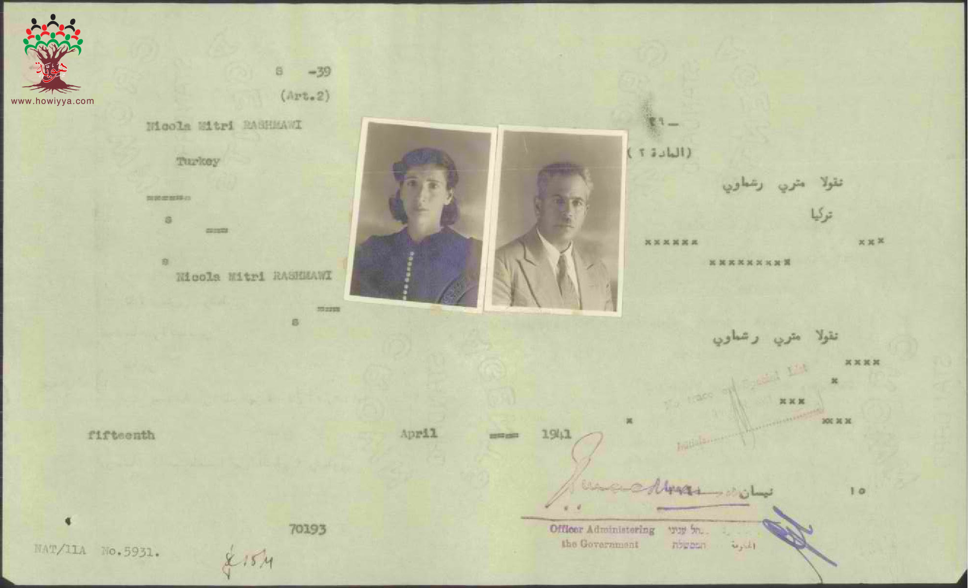 ورقة بيانات نيكولا رشماوي المرفقة بطلب الجنسية