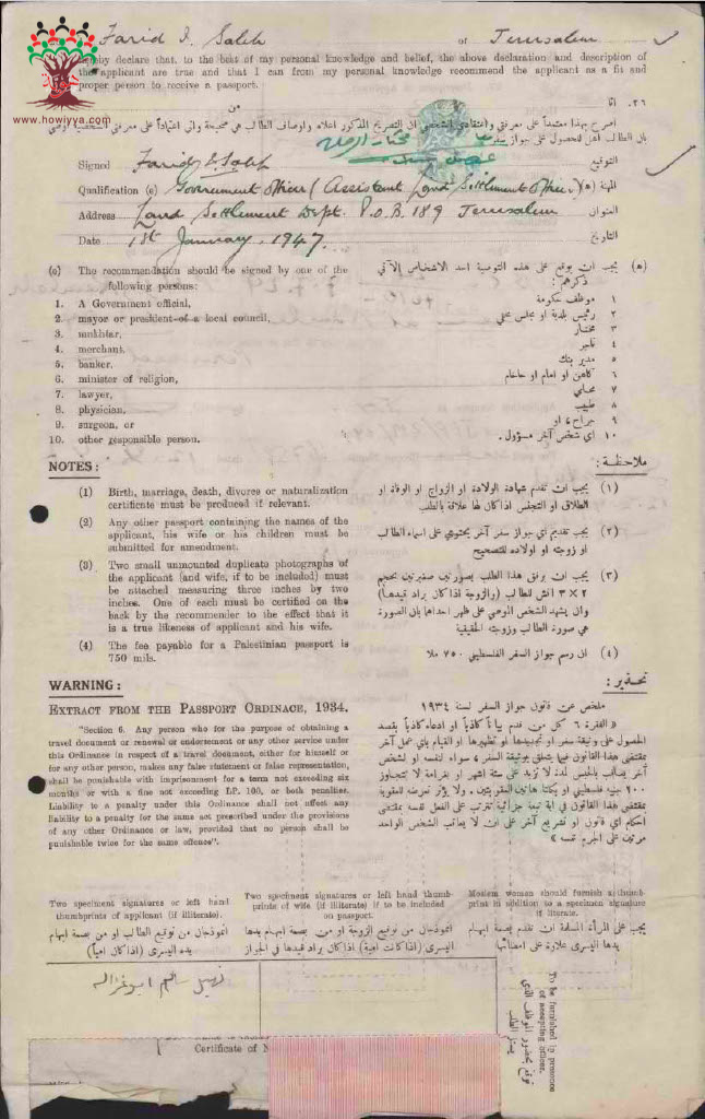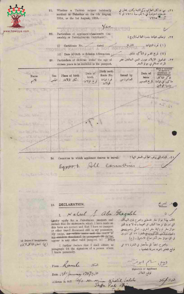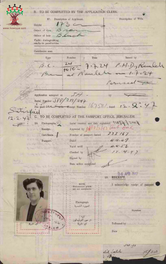 طلب جواز سفر فلسطيني - نهيل سالم اندراوس أبو غزالة - الرملة
