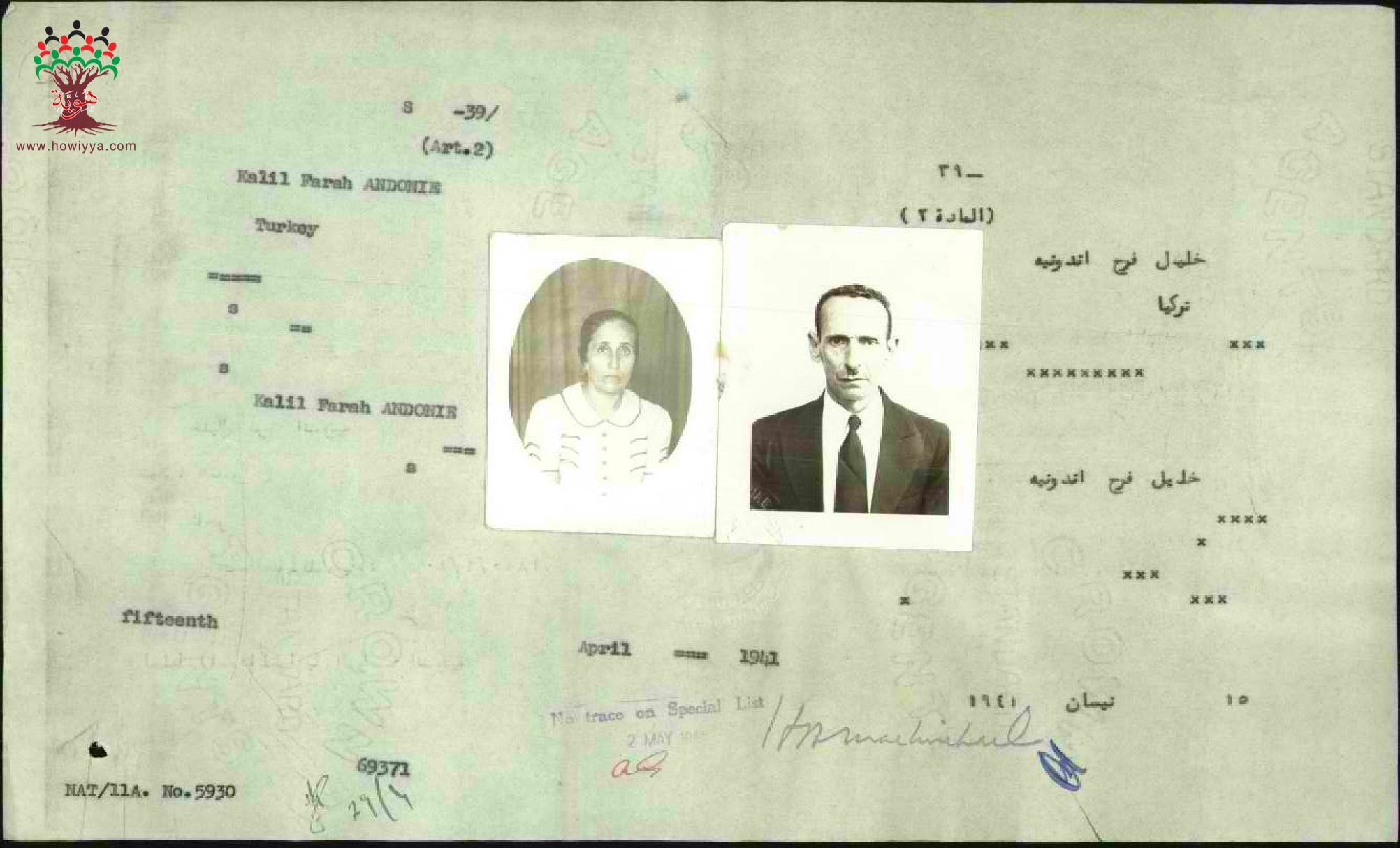 ورقة بيانات خليل فرح أندونية المرفقة بطلب الجنسية الفلسطينية