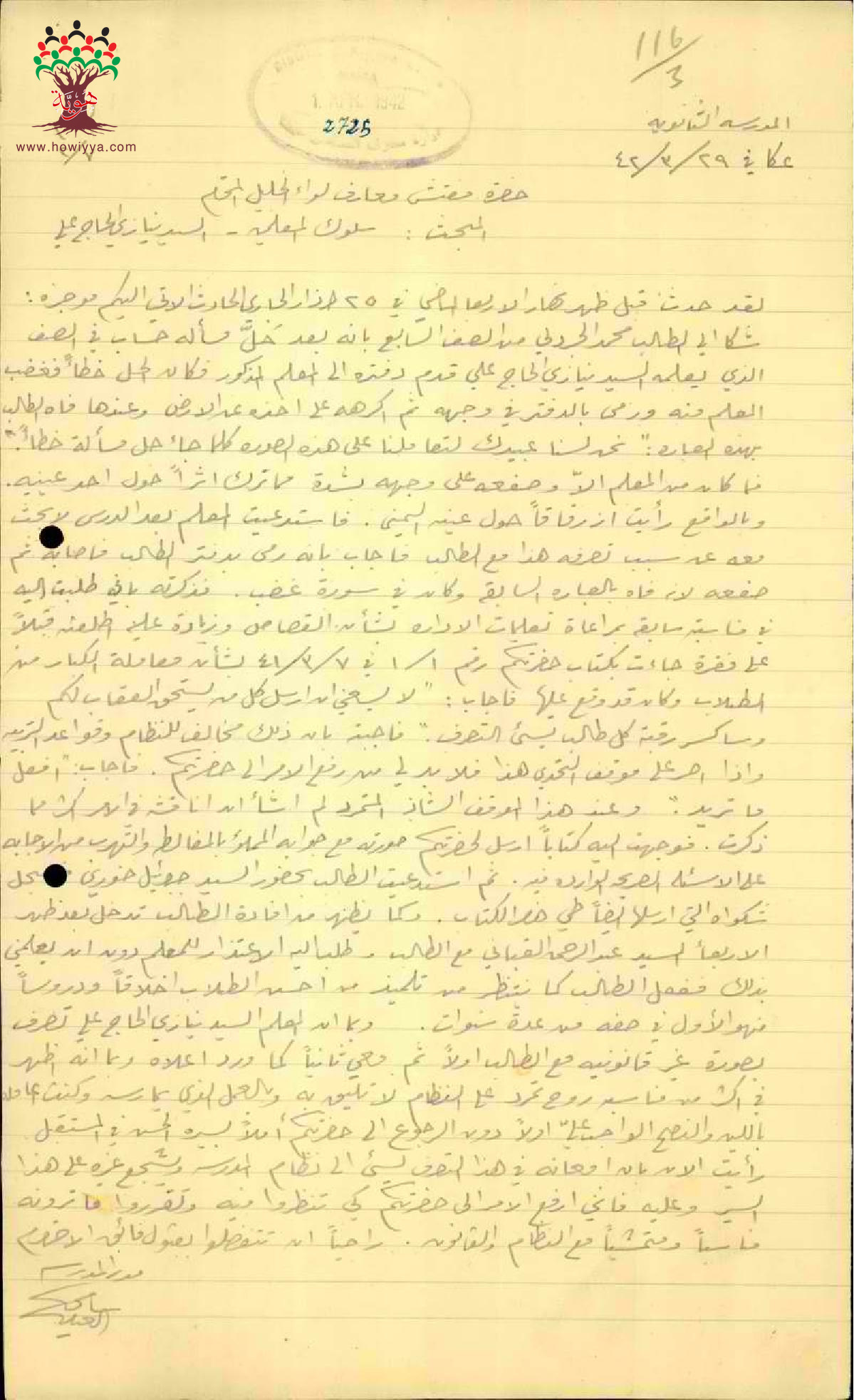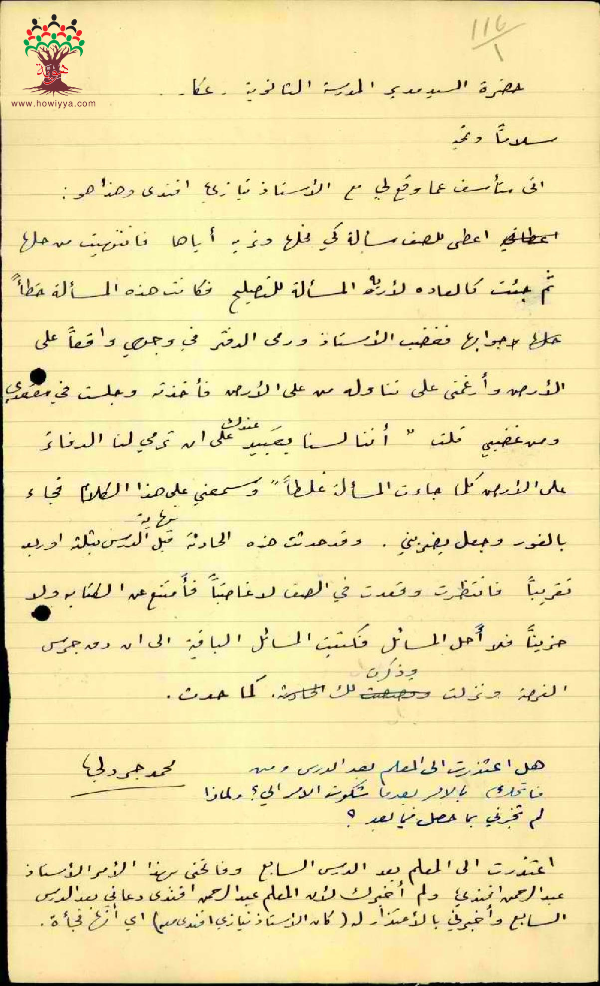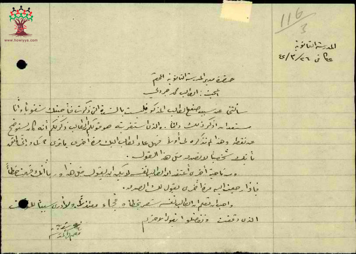 مجموعة رسائل بخصوص حادثة ضرب المعلم نيازي شديد لأحد طلابه واعتذاره منه
