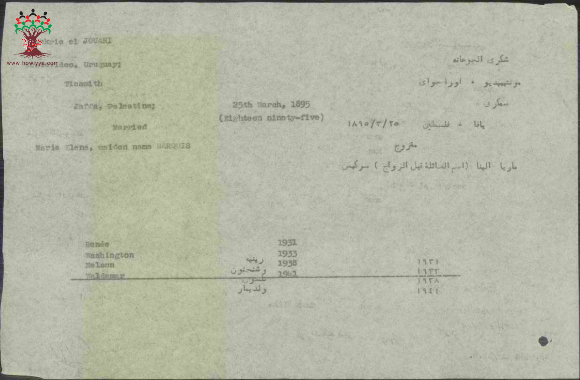مواليد في 1895/3/25 متزوج من ماريا سركيس