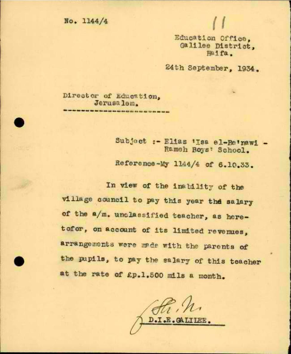 مجموعة رسائل بخصوص تعيين المعلم الياس البعناوي على حساب أهالي التلاميذ في مدرسة الرامة
