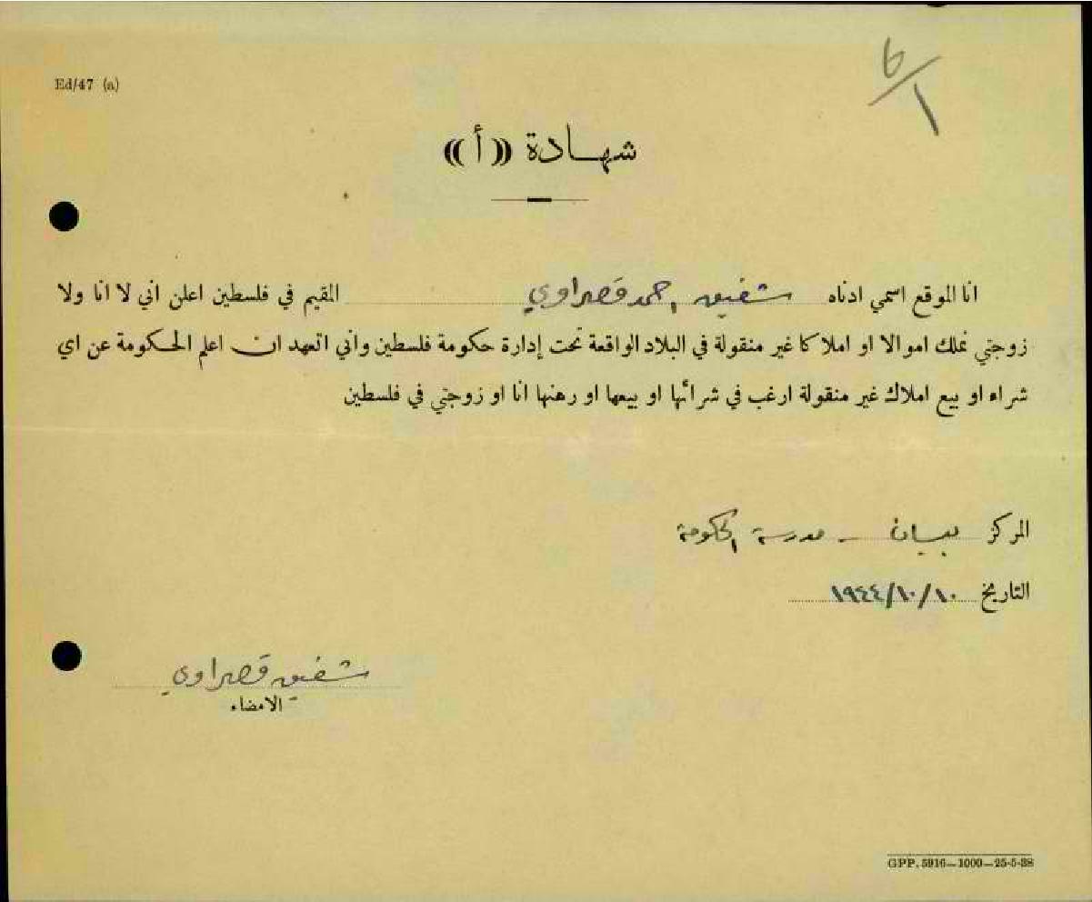 شهادة نفي ملكية-شفيق قصراوي/عورتا