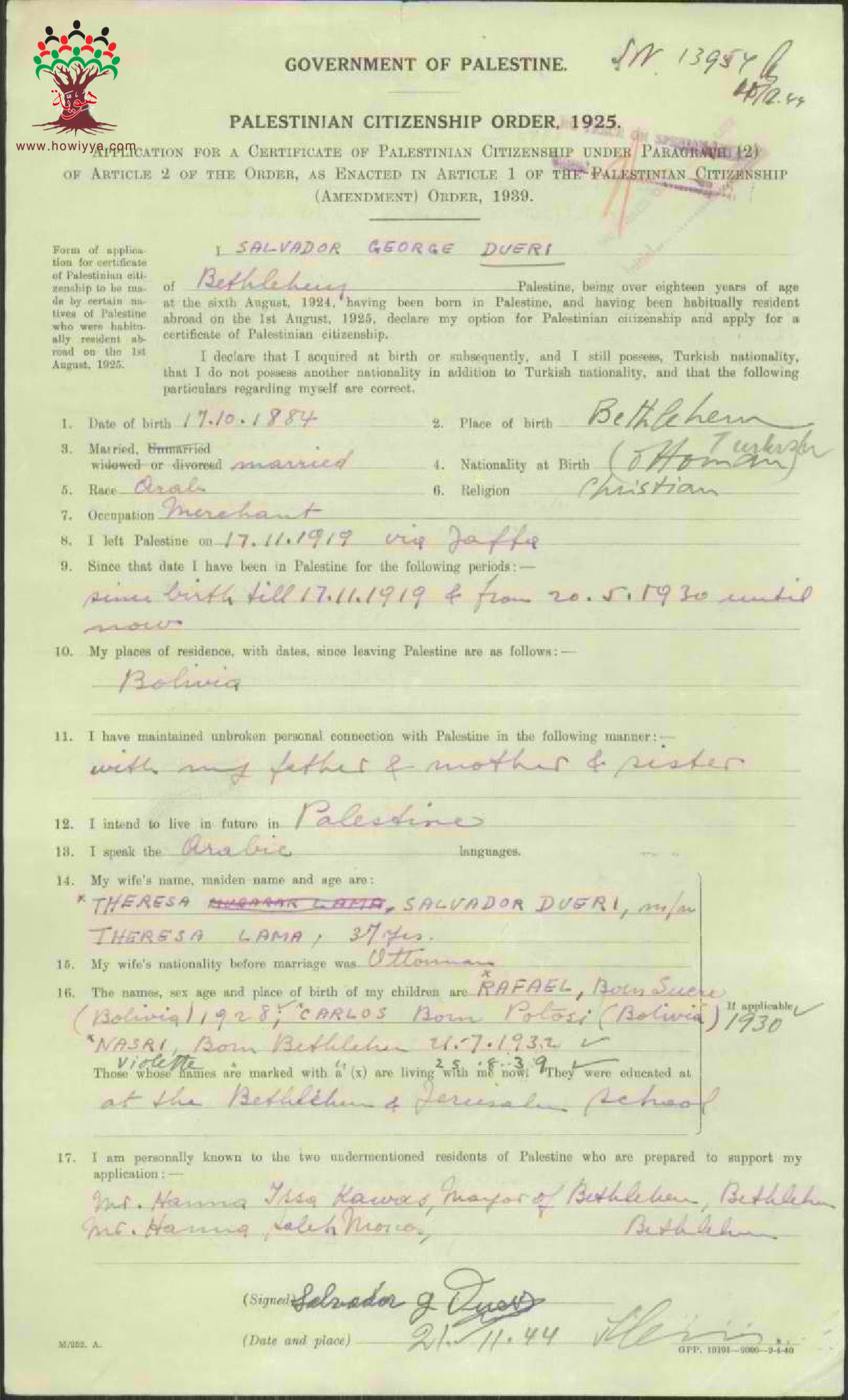 طلب الجنسية الفلسطينية - عيسى جريس الدويري - بيت لحم