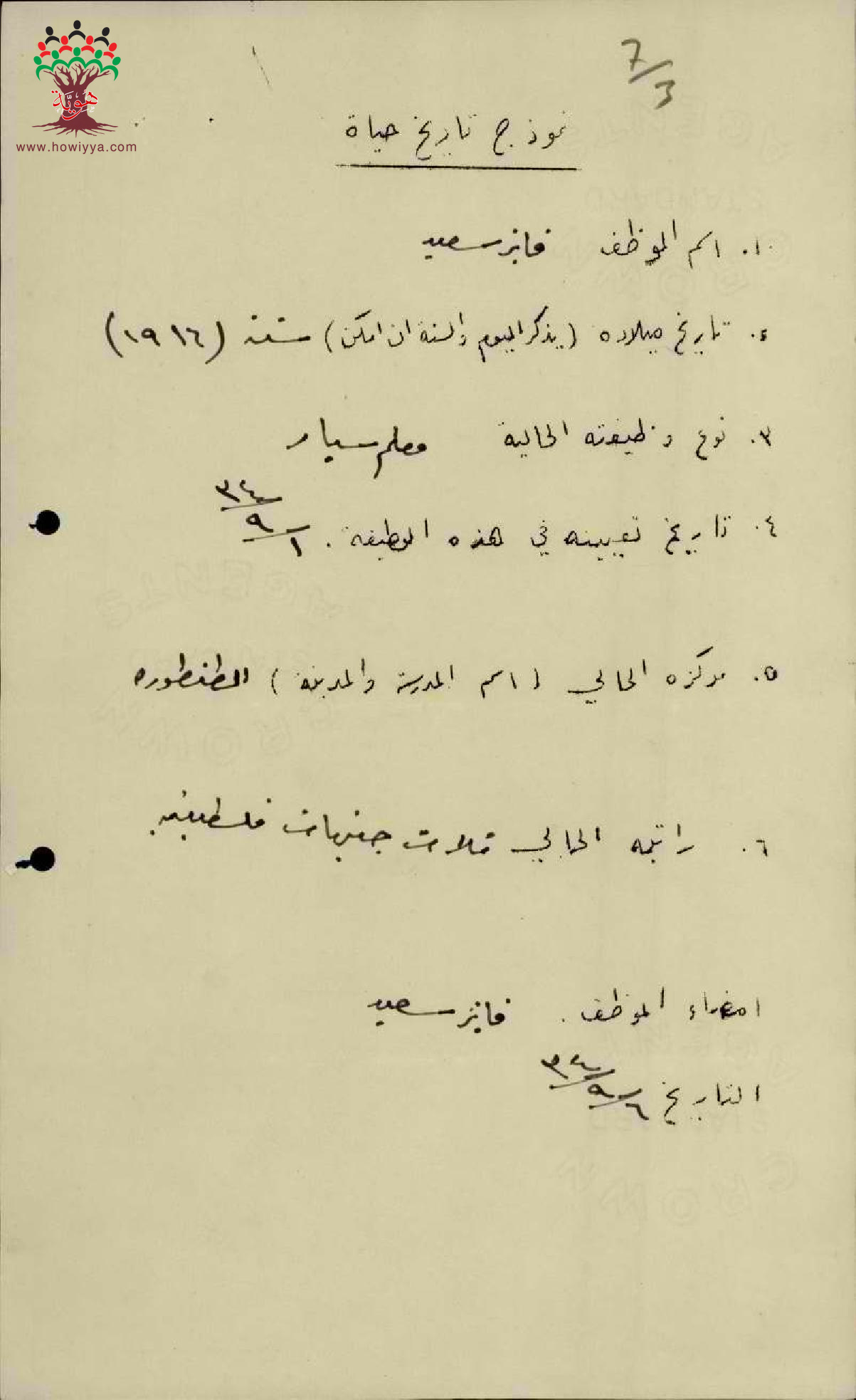 نموذج عن تاريخ حياة المعلم فايز سعيد