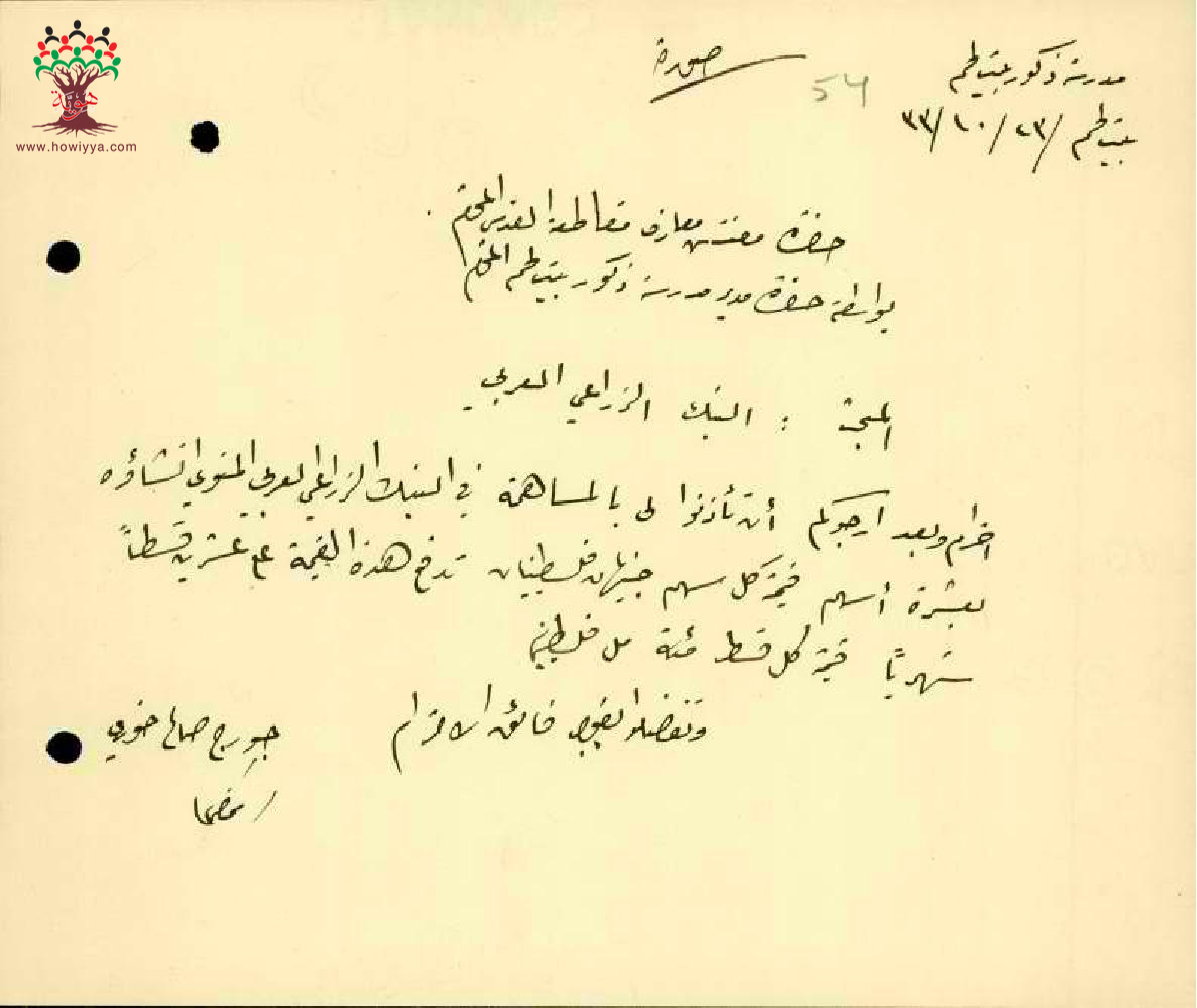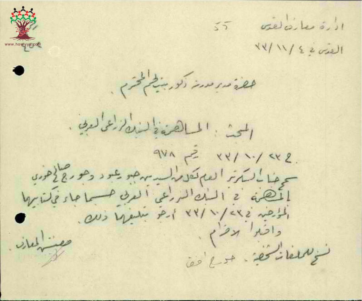 رسائل بخصوص مساهمة المعلم جورج صالح خوري في البنك الزراعي العربي