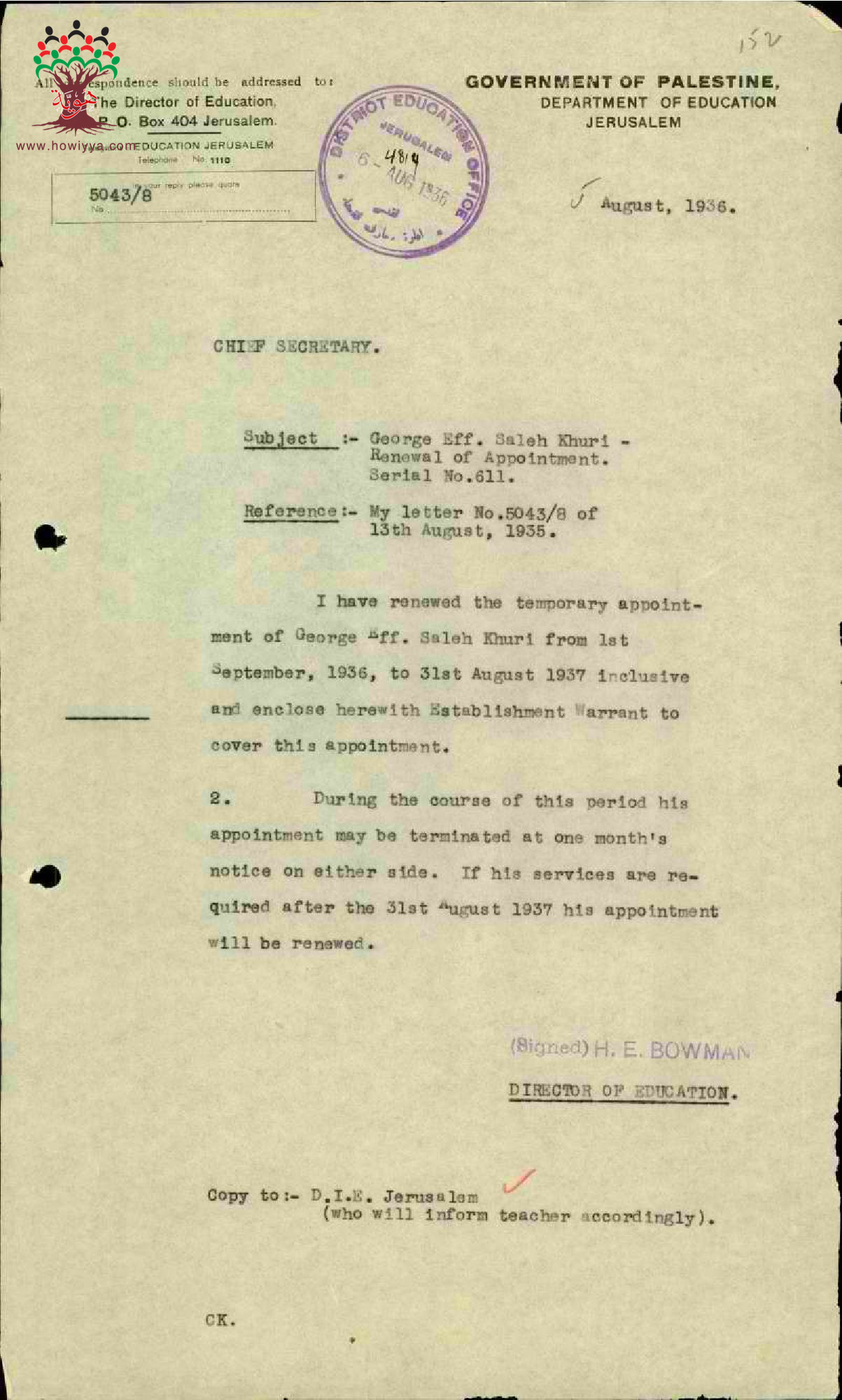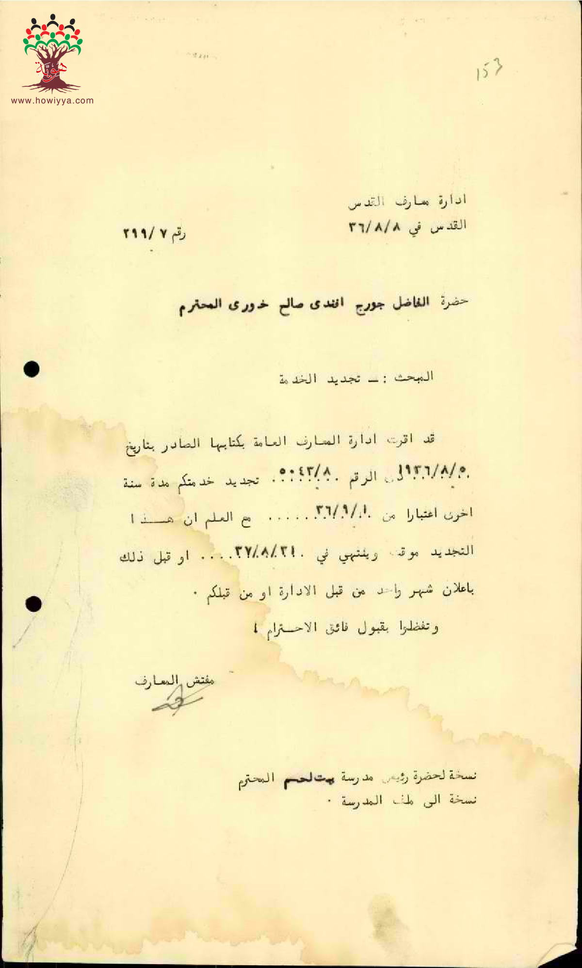 رسائل بخصوص تجديد خدمة المعلم جورج خوري