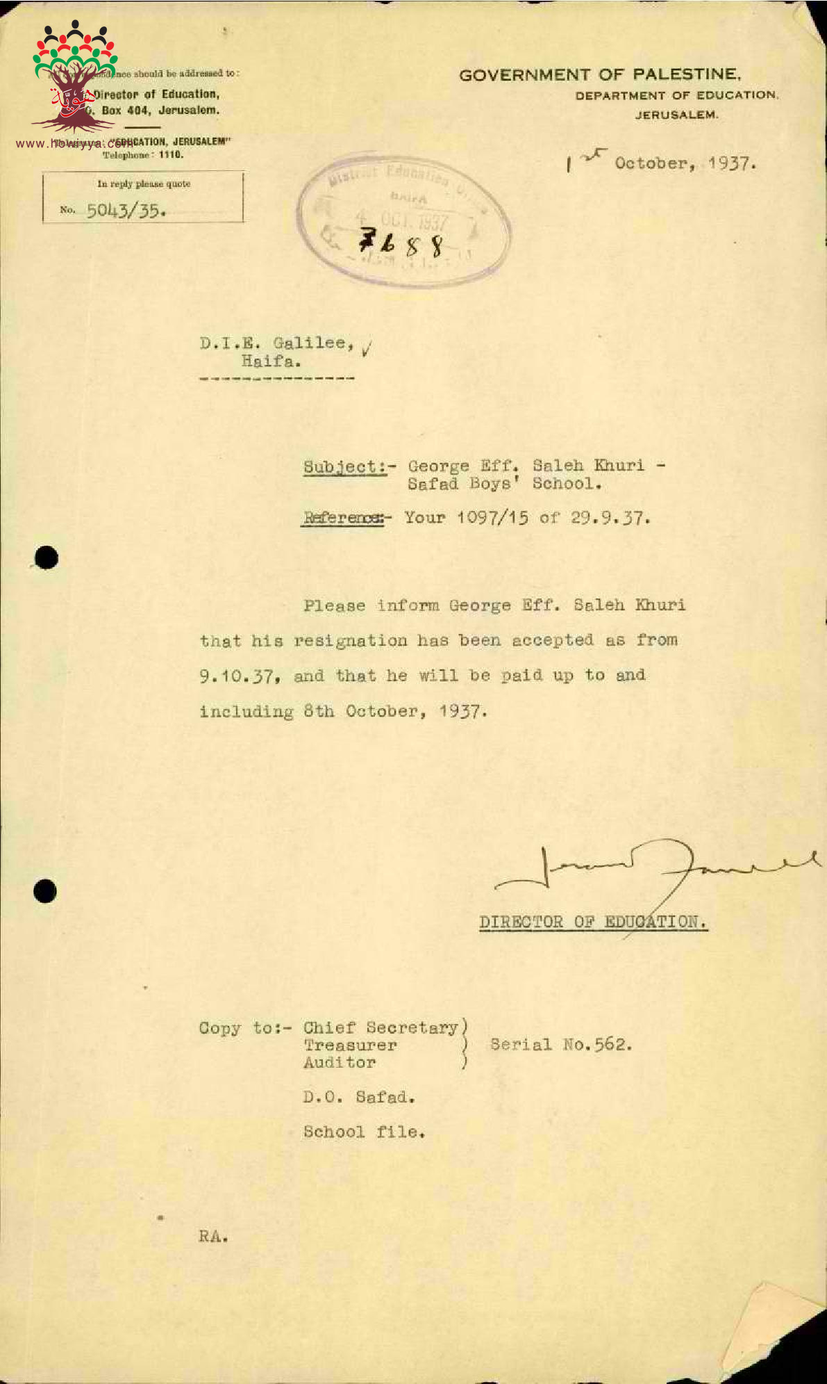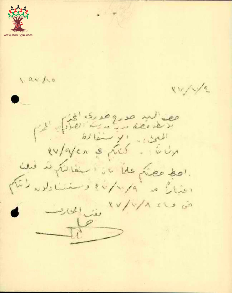 رسائل بخصوص قبول استقالة المعلم جورج خوري