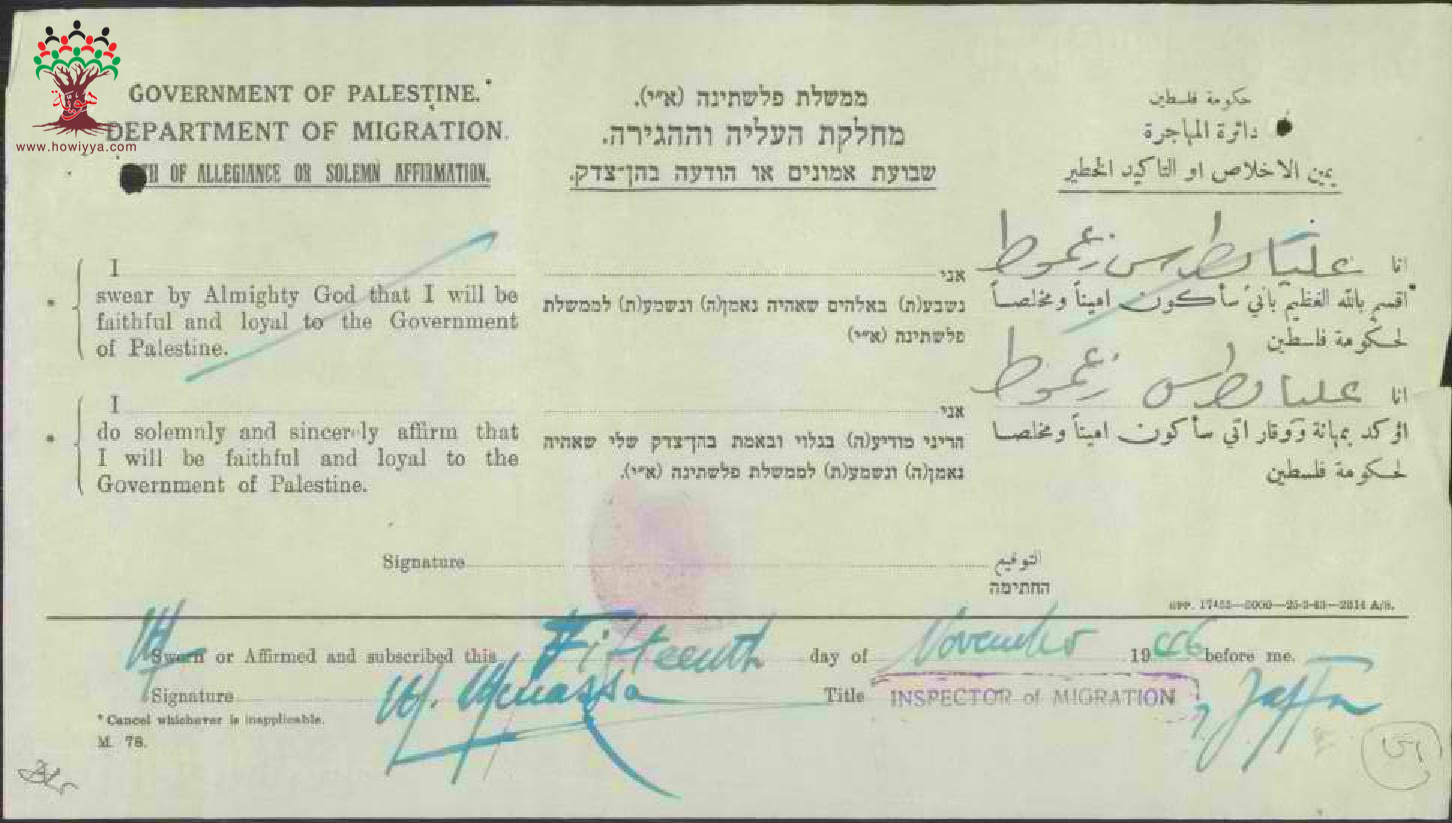 عليا بطرس زعمط توقع يمين الاخلاص للحصول على الجنسية الفلسطينية
