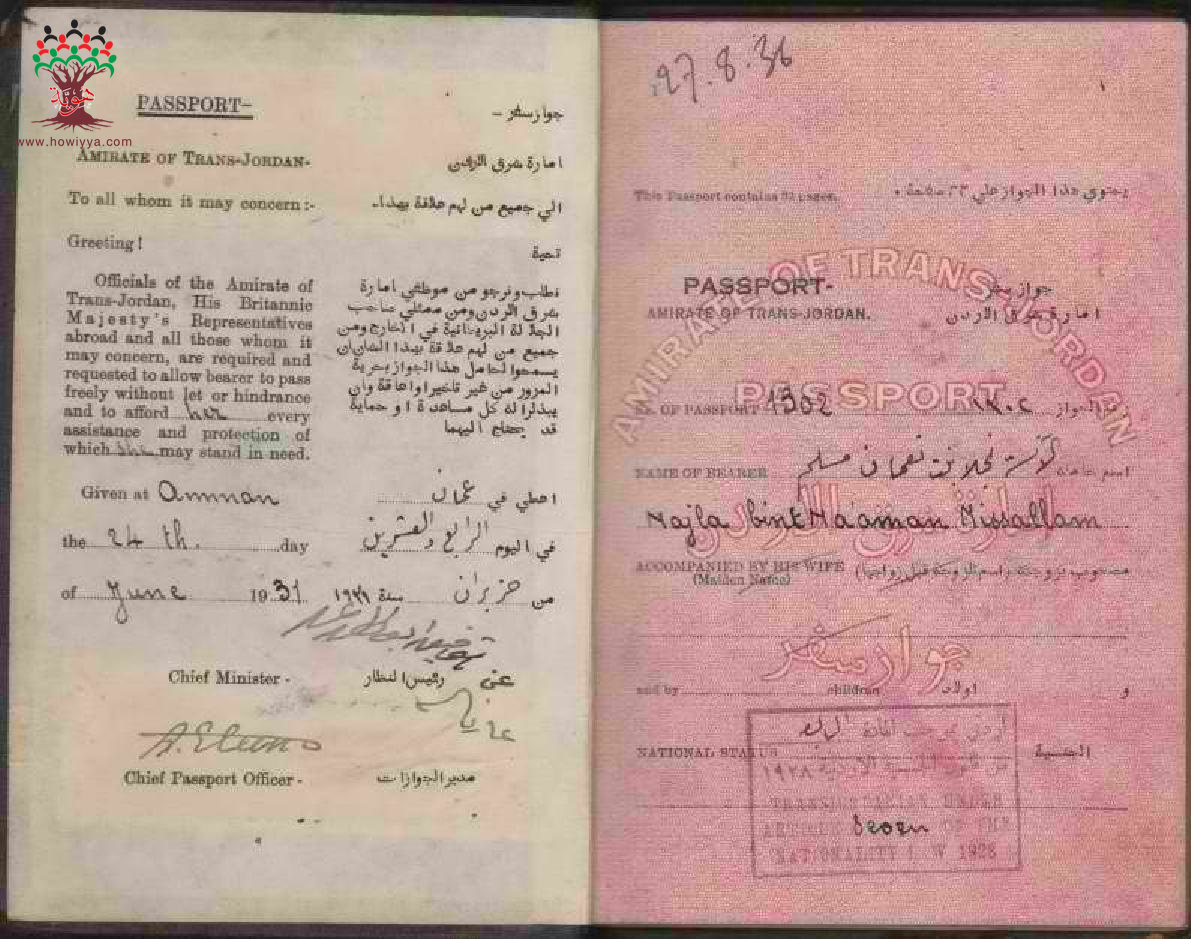 جواز سفر أردني بإسم نجلا نعمان مسلم