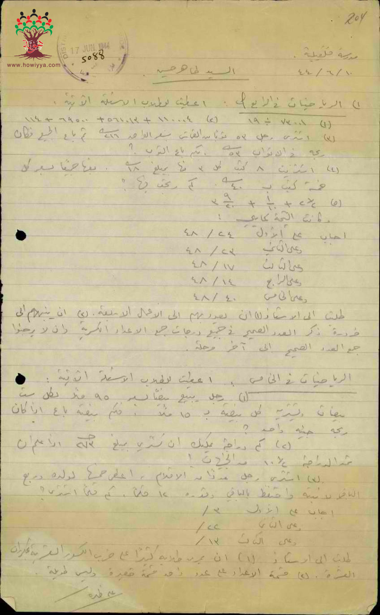 تقرير مفصل عن أداء المعلم طاهر حسين سنة 1944