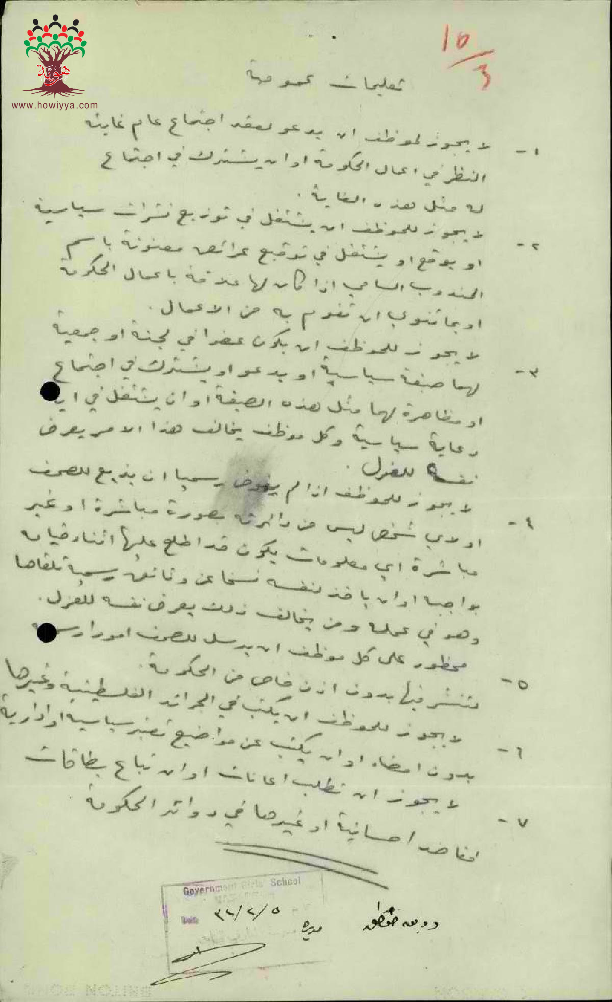 توقيع المعلمة وديعة طقطق على التعليمات العمومية لإدارة المعارف