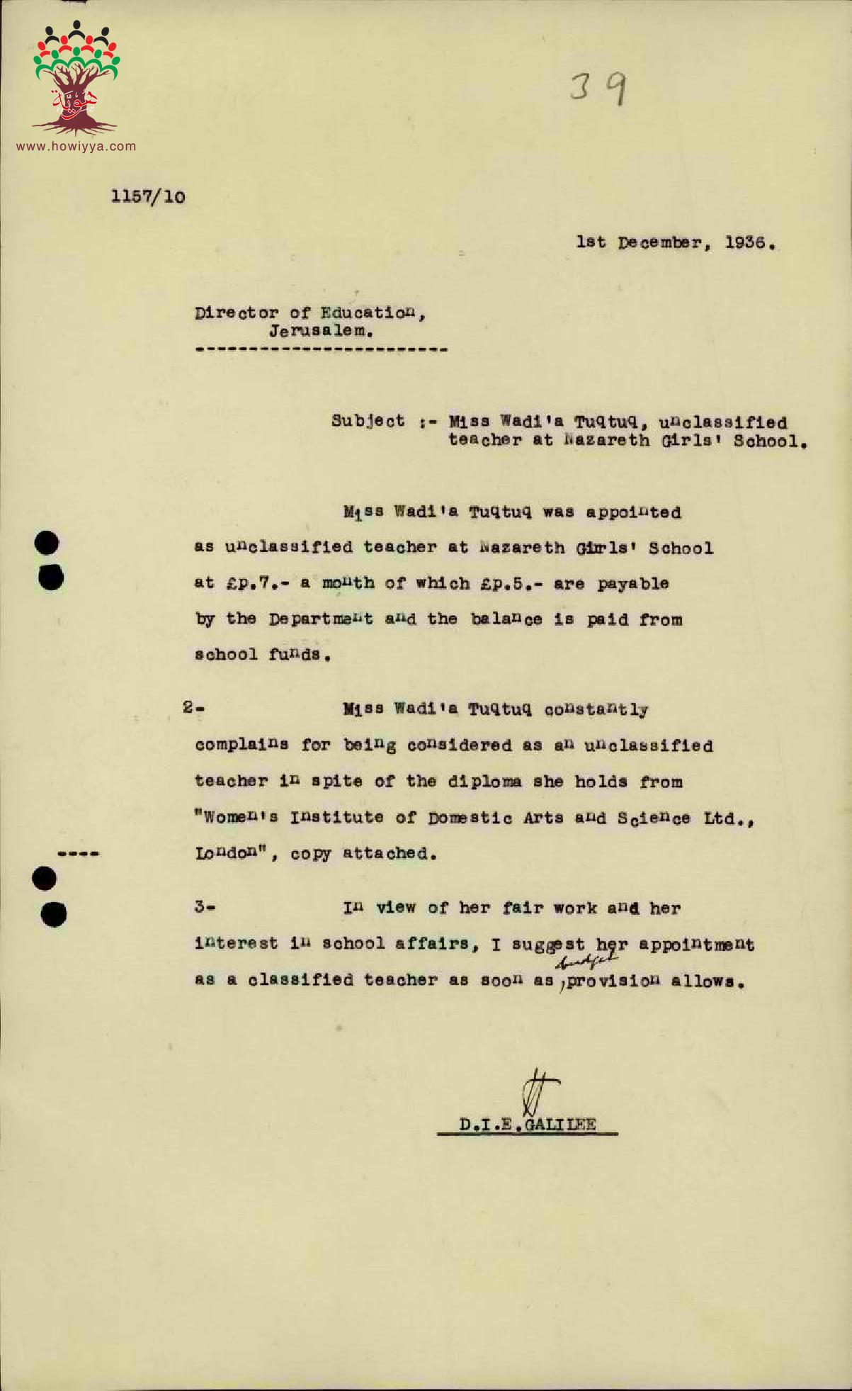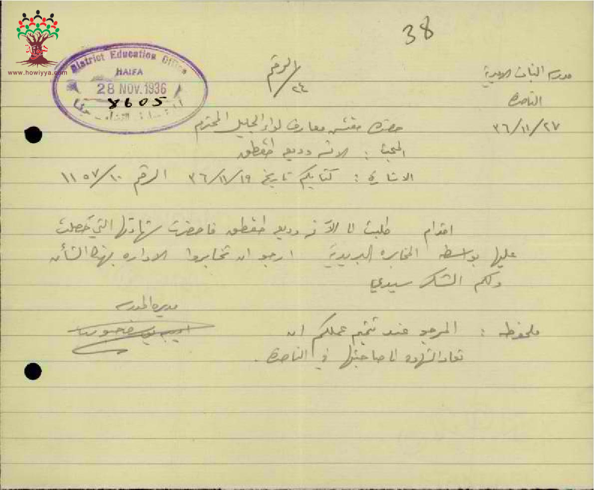 مجموعة رسائل بخصوص طلب المعلمة وديعة طقطق تعيينها كمعلمة نظامية