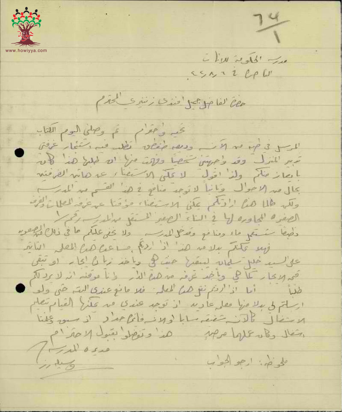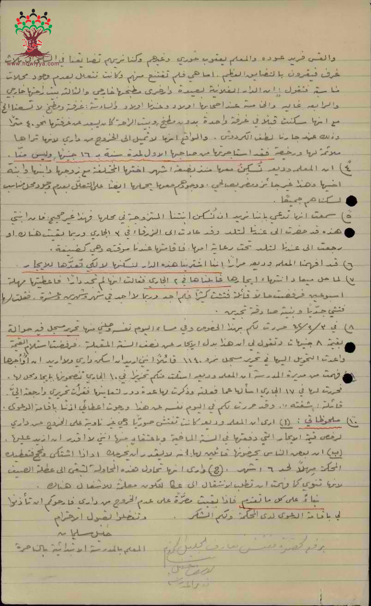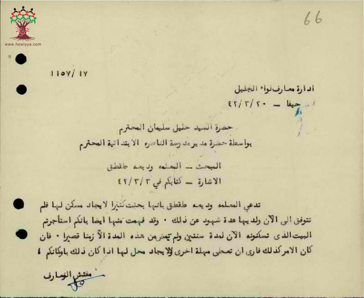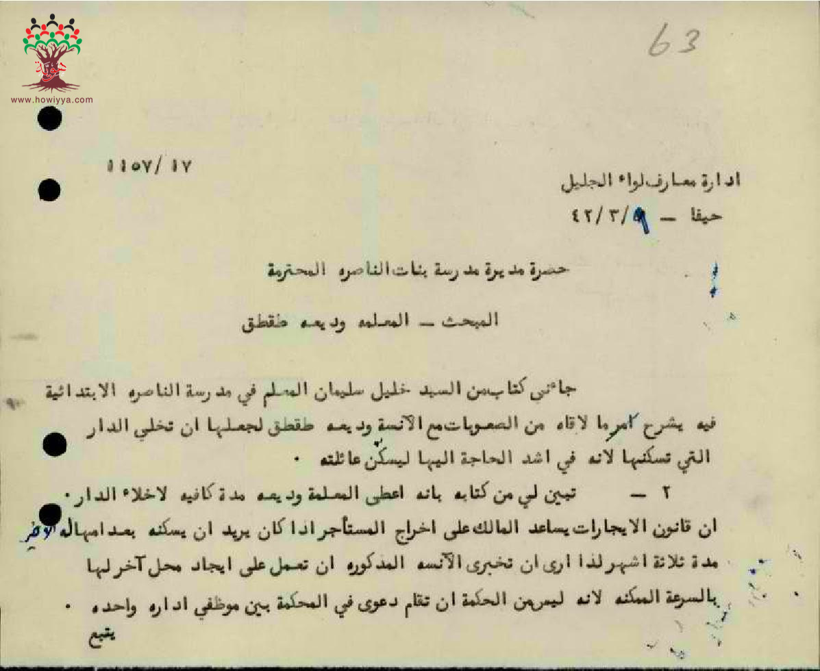 مجموعة رسائل بخصوص الاشكال الحاصل بين المعلمة وديعة طقطق وصاحب الدار الذي تسكن فيها واصرارها على عدم الاخلاء