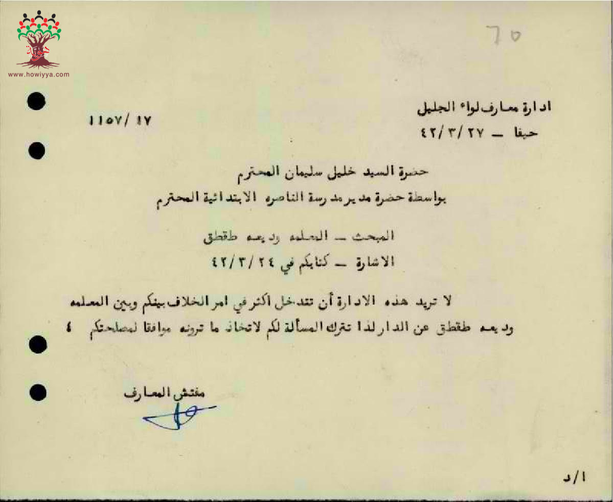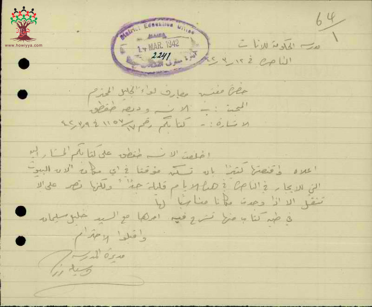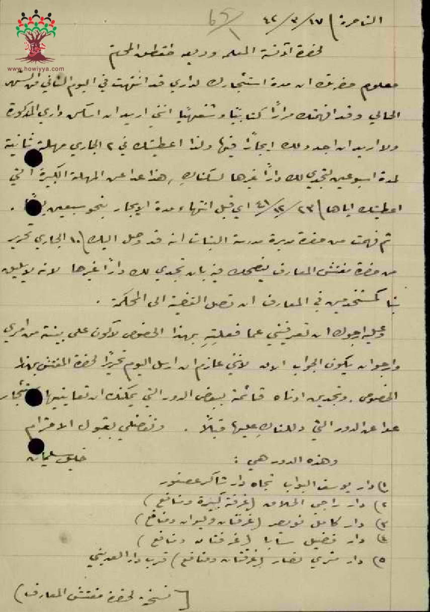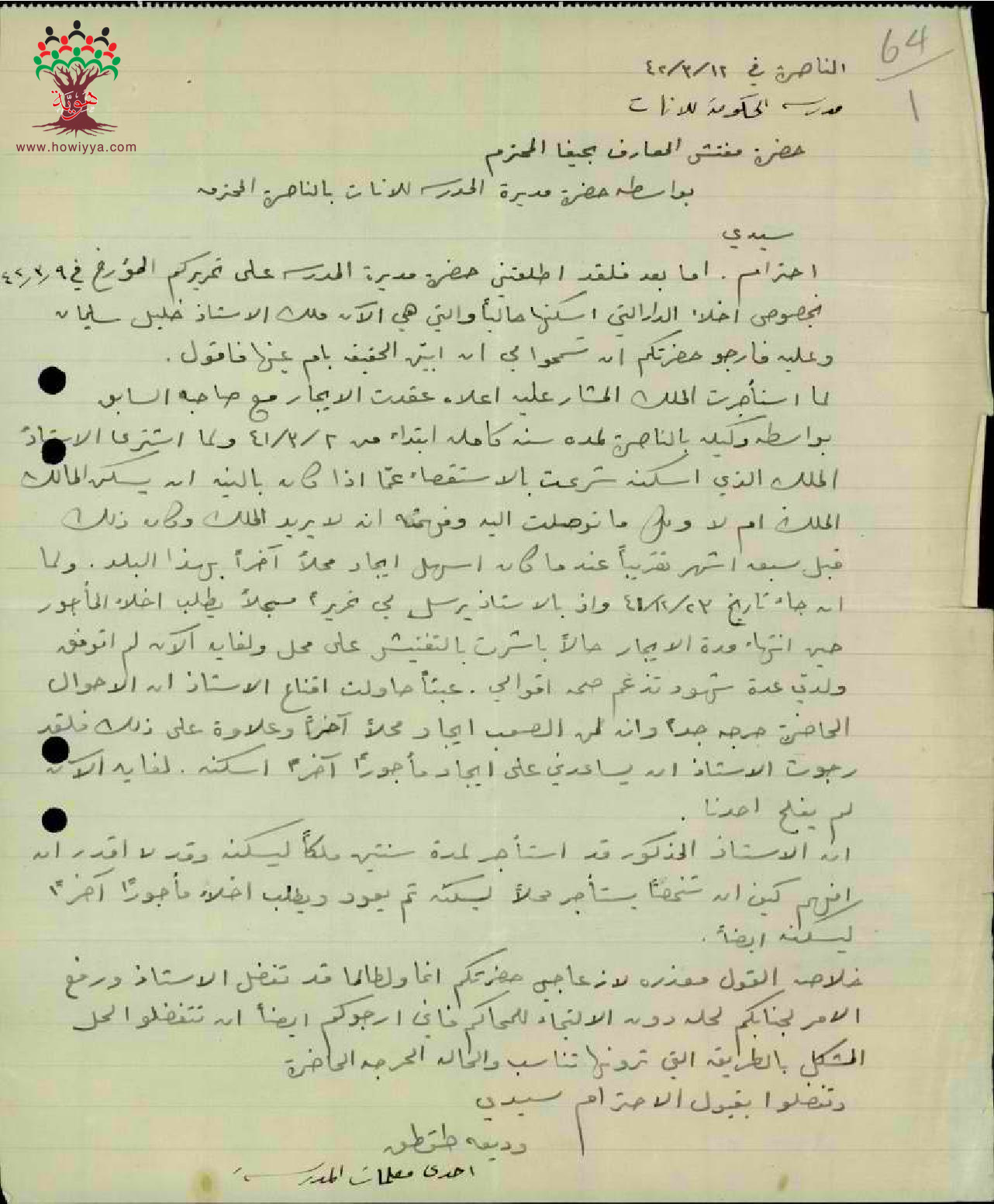 مجموعة رسائل بخصوص الاشكال الحاصل بين المعلمة وديعة طقطق وصاحب الدار الذي تسكن فيها واصرارها على عدم الاخلاء