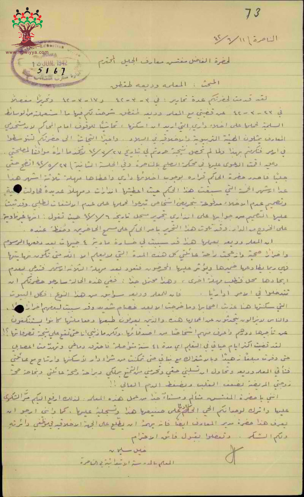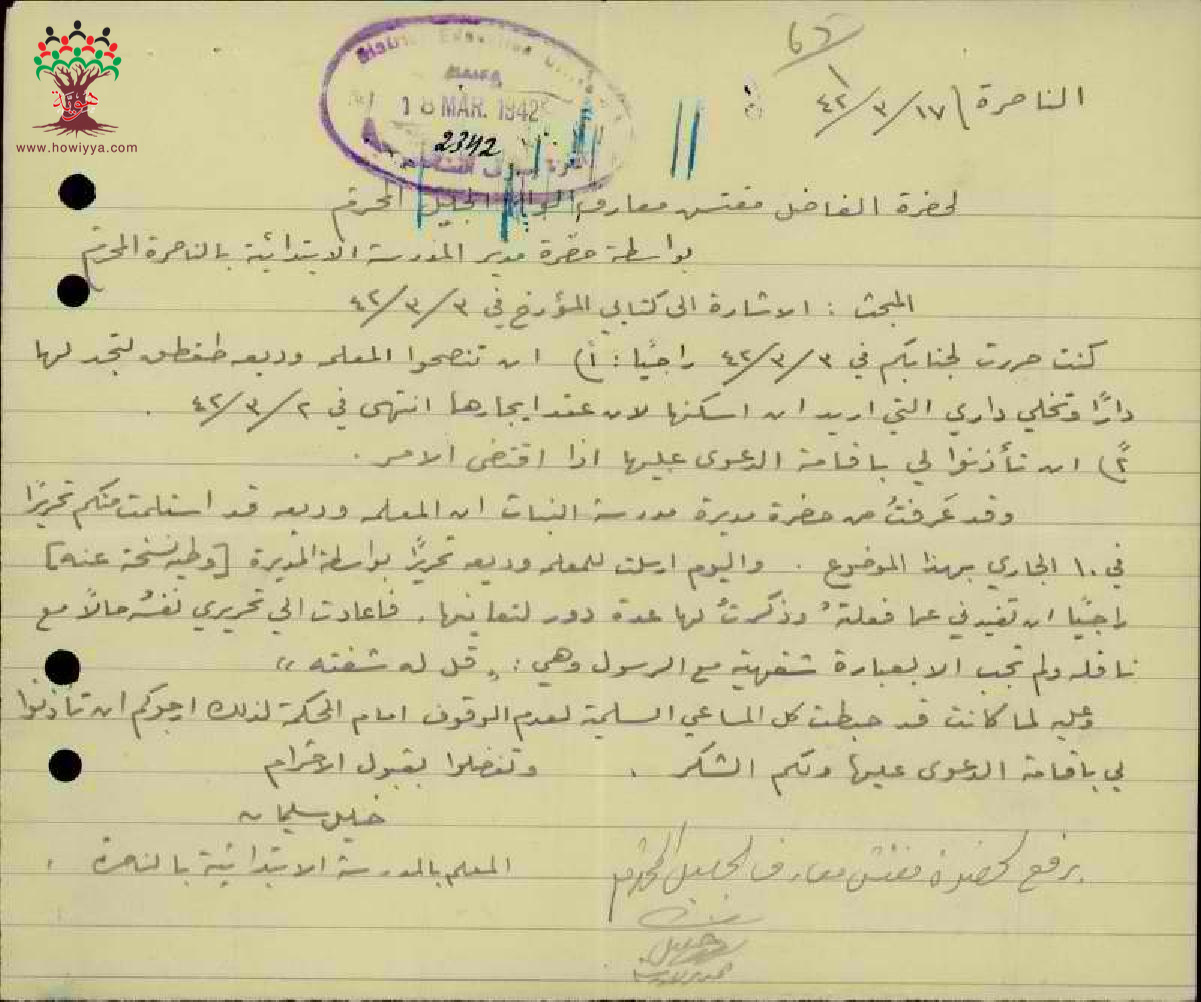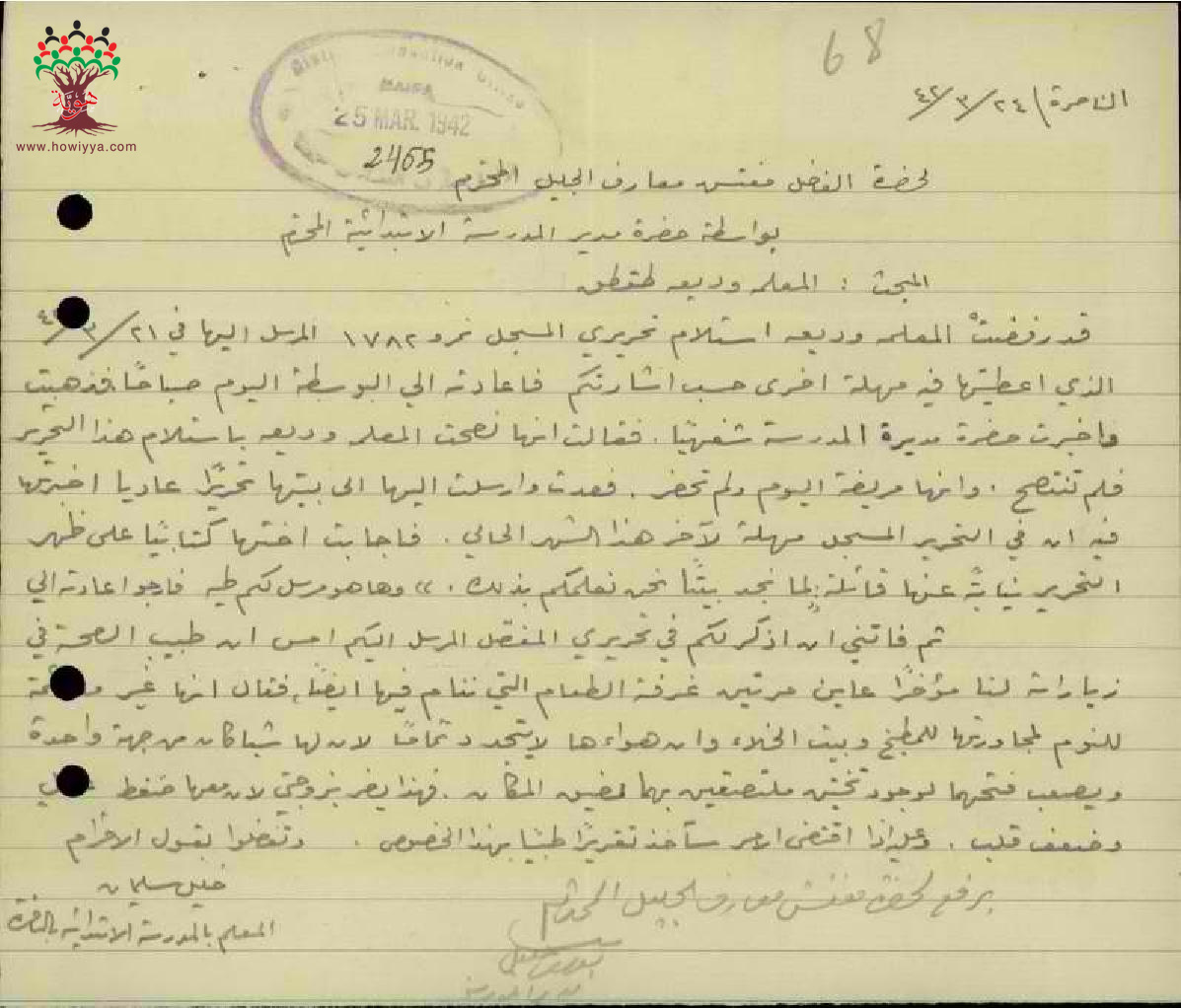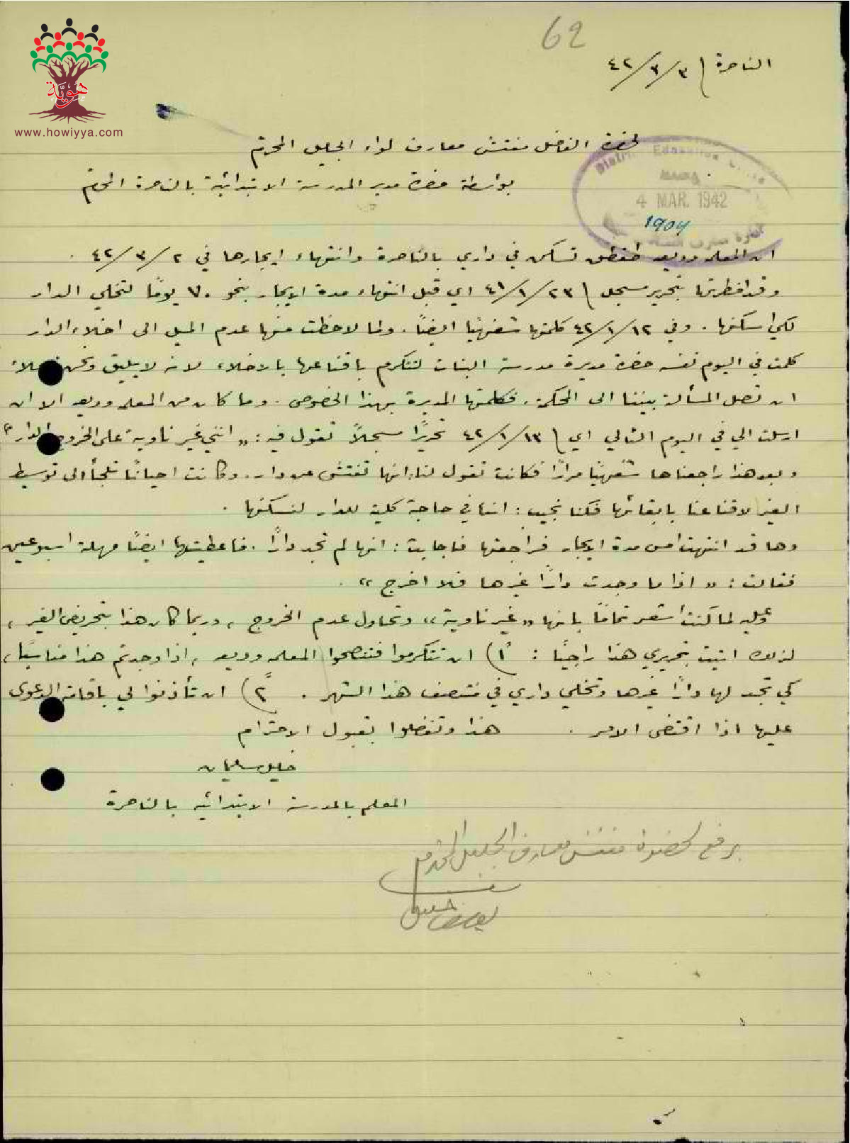 مجموعة رسائل بخصوص الاشكال الحاصل بين المعلمة وديعة طقطق وصاحب الدار الذي تسكن فيها واصرارها على عدم الاخلاء
