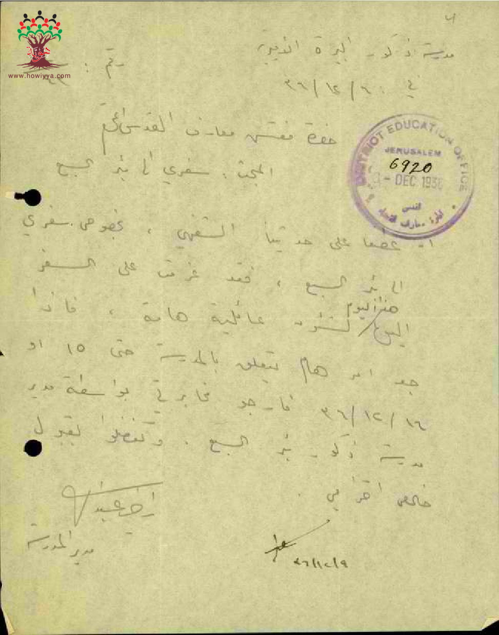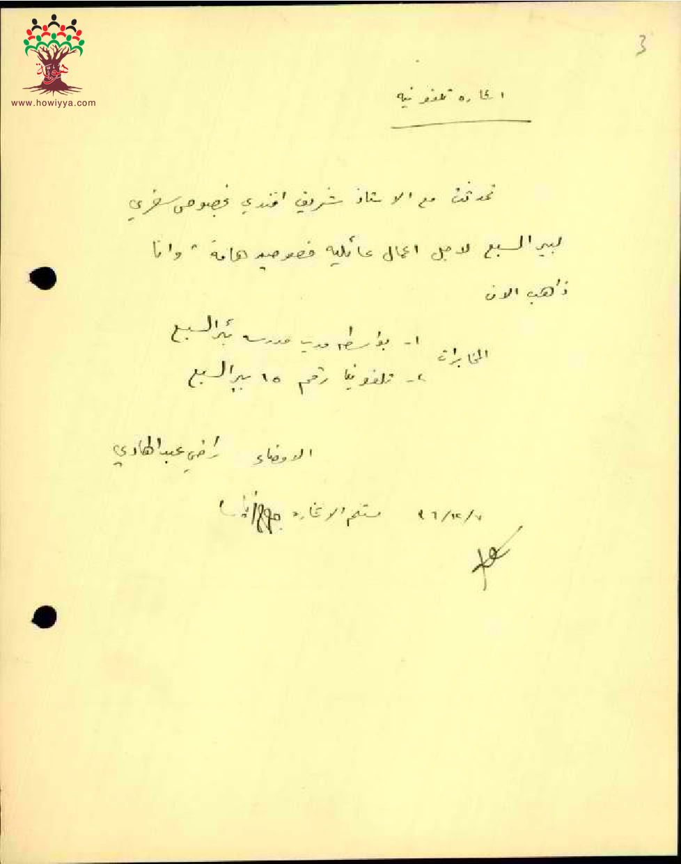رسائل بخصوص سفر المعلم راضي عبد الهادي الى بئر السبع