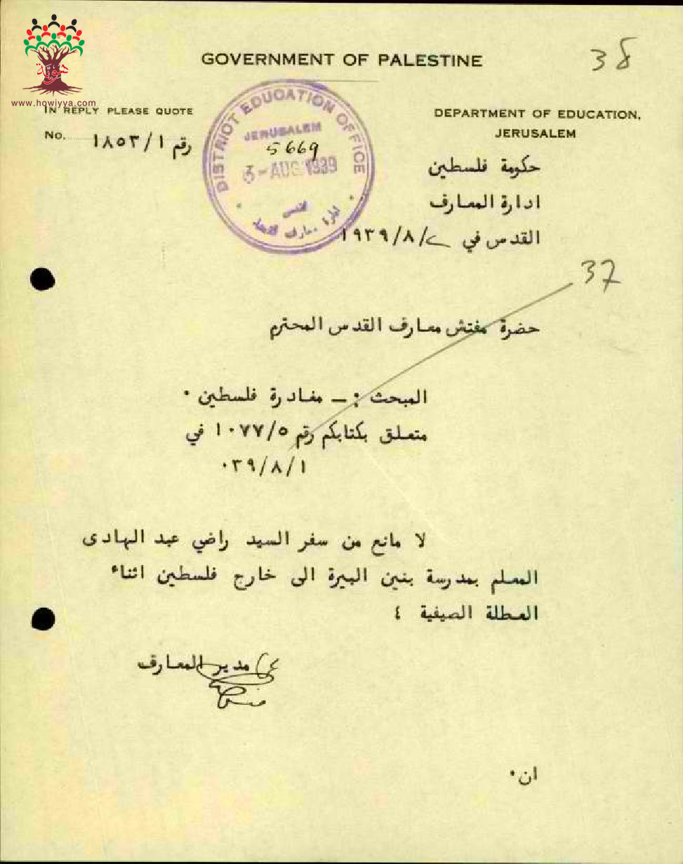 السماح للمعلم راضي عبد الهادي بمغادرة فلسطين خلال العطلة الصيفية