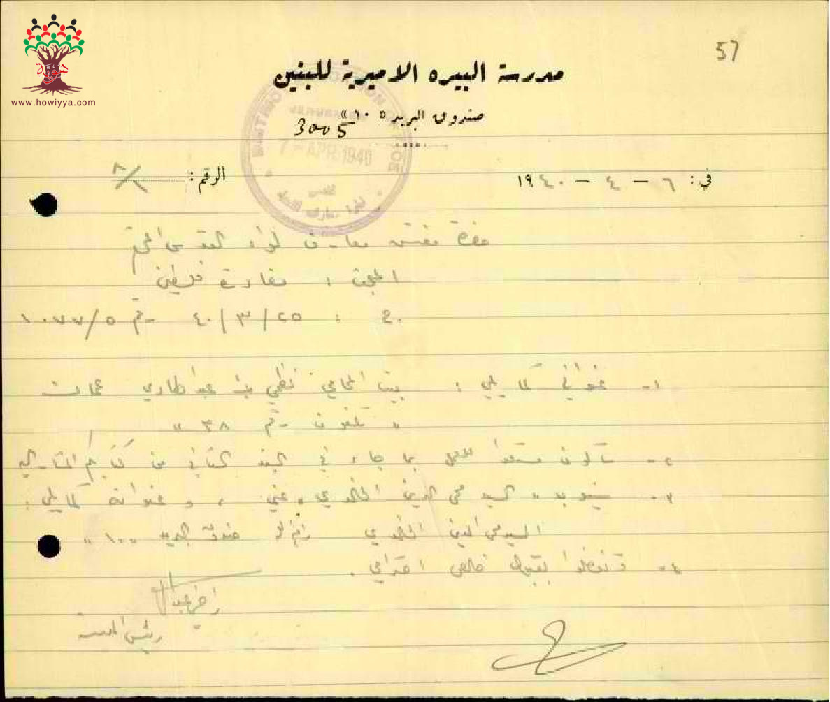 رسالة من المعلم راضي عبد الهادي الى مفتش المعارف بخصوص عنوانه خلال سفره