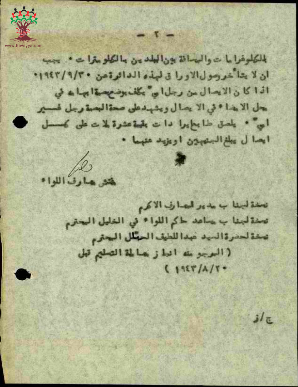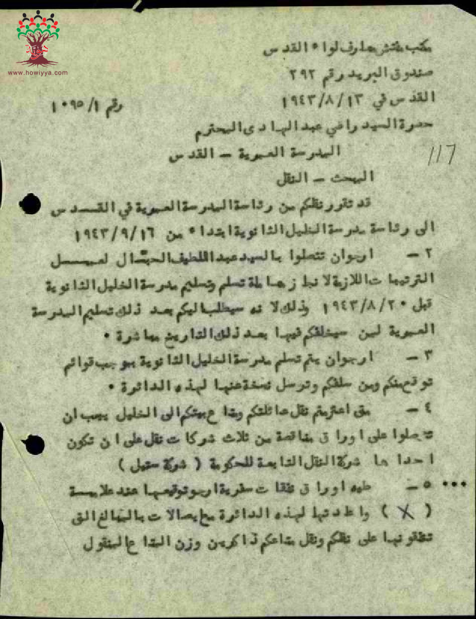 نقل المعلم راضي عبد الهادي من المدرسة العمرية في القدس الى مدرسة الخليل الثانوية