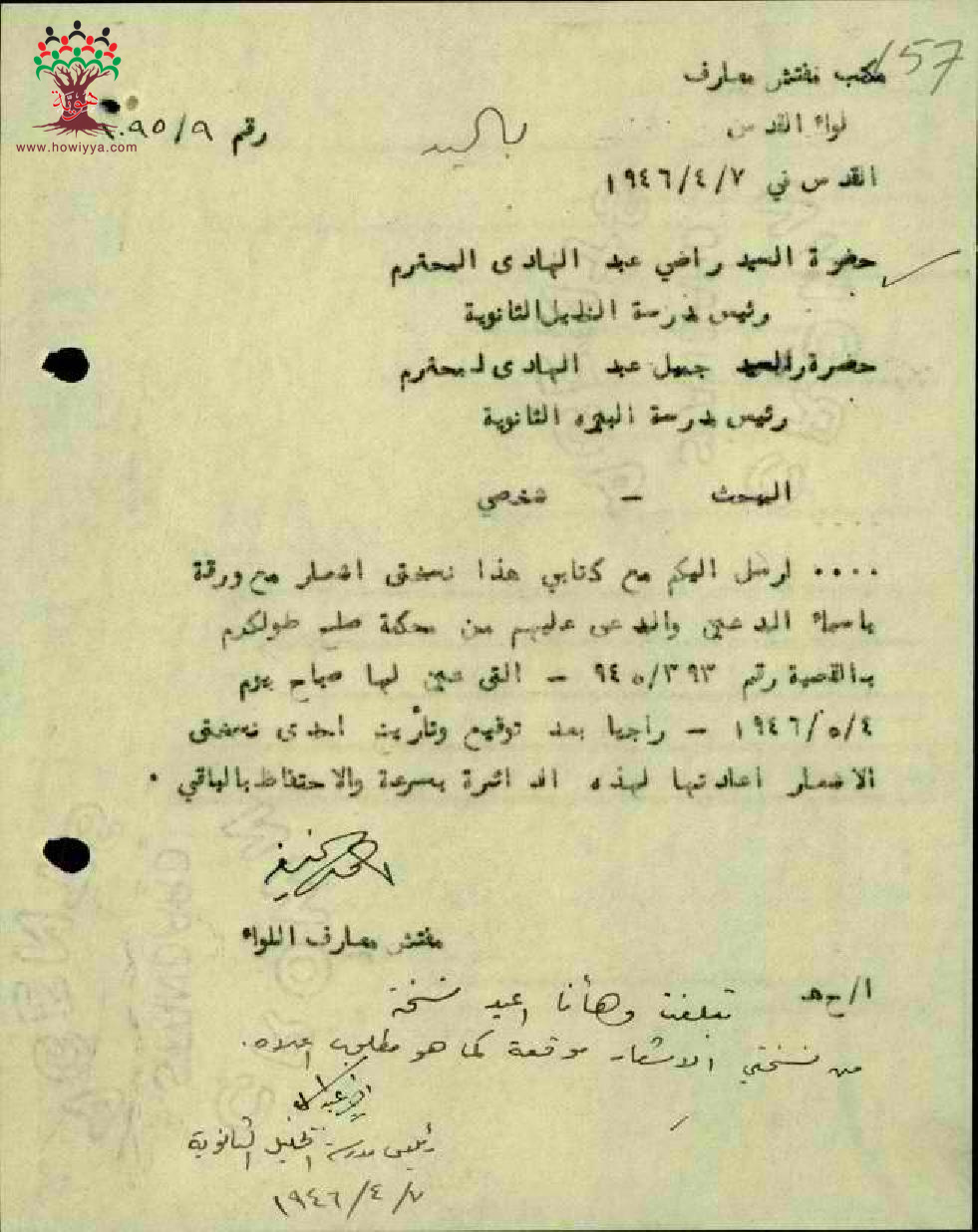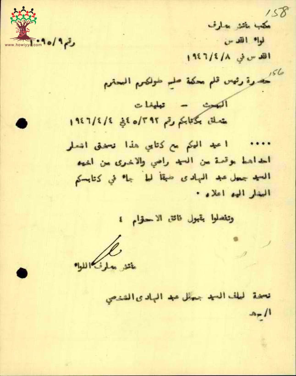 مجموعة رسائل بخصوص تبليغات واشعارت من محكمة صلح رام الله للمعلم راضي عبد الهادي