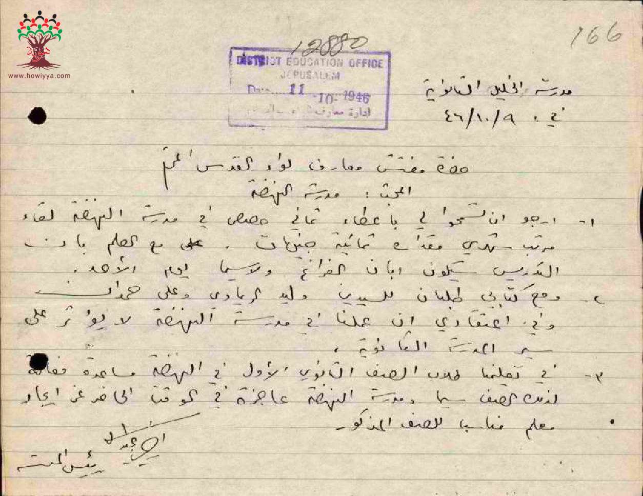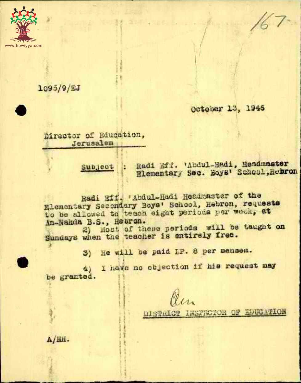 رسائل بخصوص السماح للمعلم راضي عبد الهادي باعطاء دروس في مدرسة النهضة