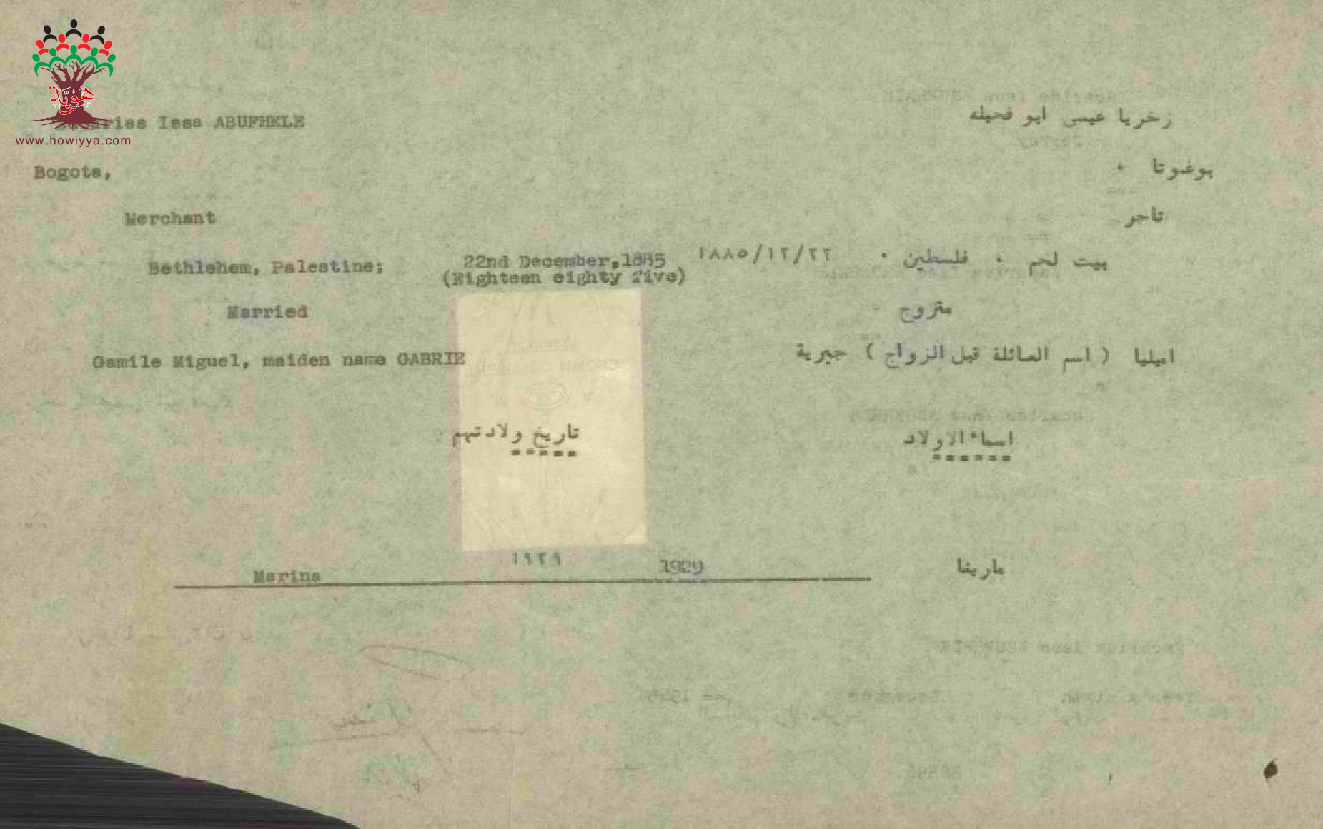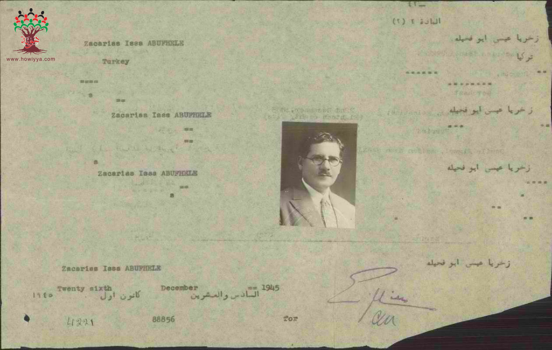 ورقة بيانات زخريا أبو فحيلة المرفقة بطلب الجنسية