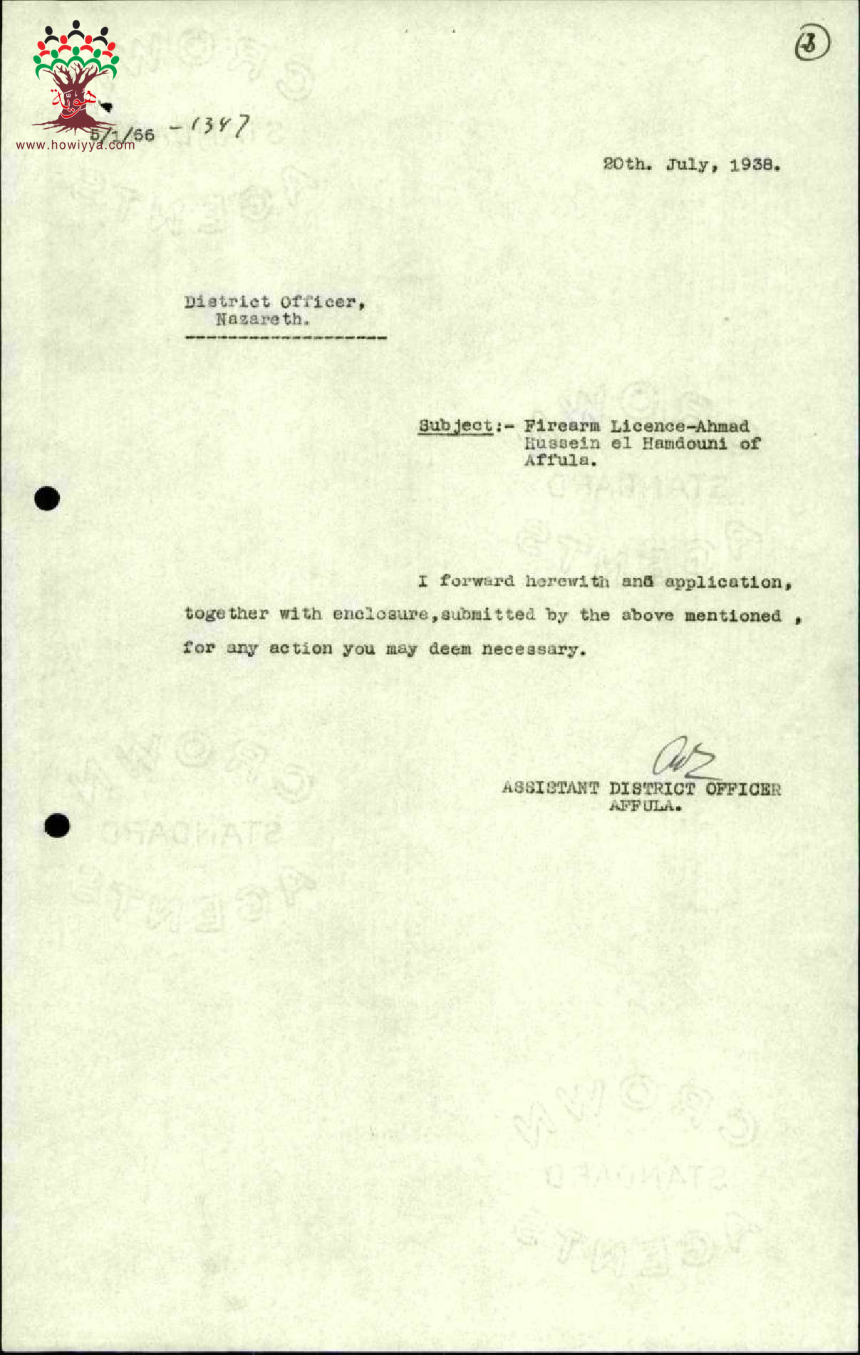 رسالة بخصوص طلب أحمد حمدوني رخصة امتلاك سلاح