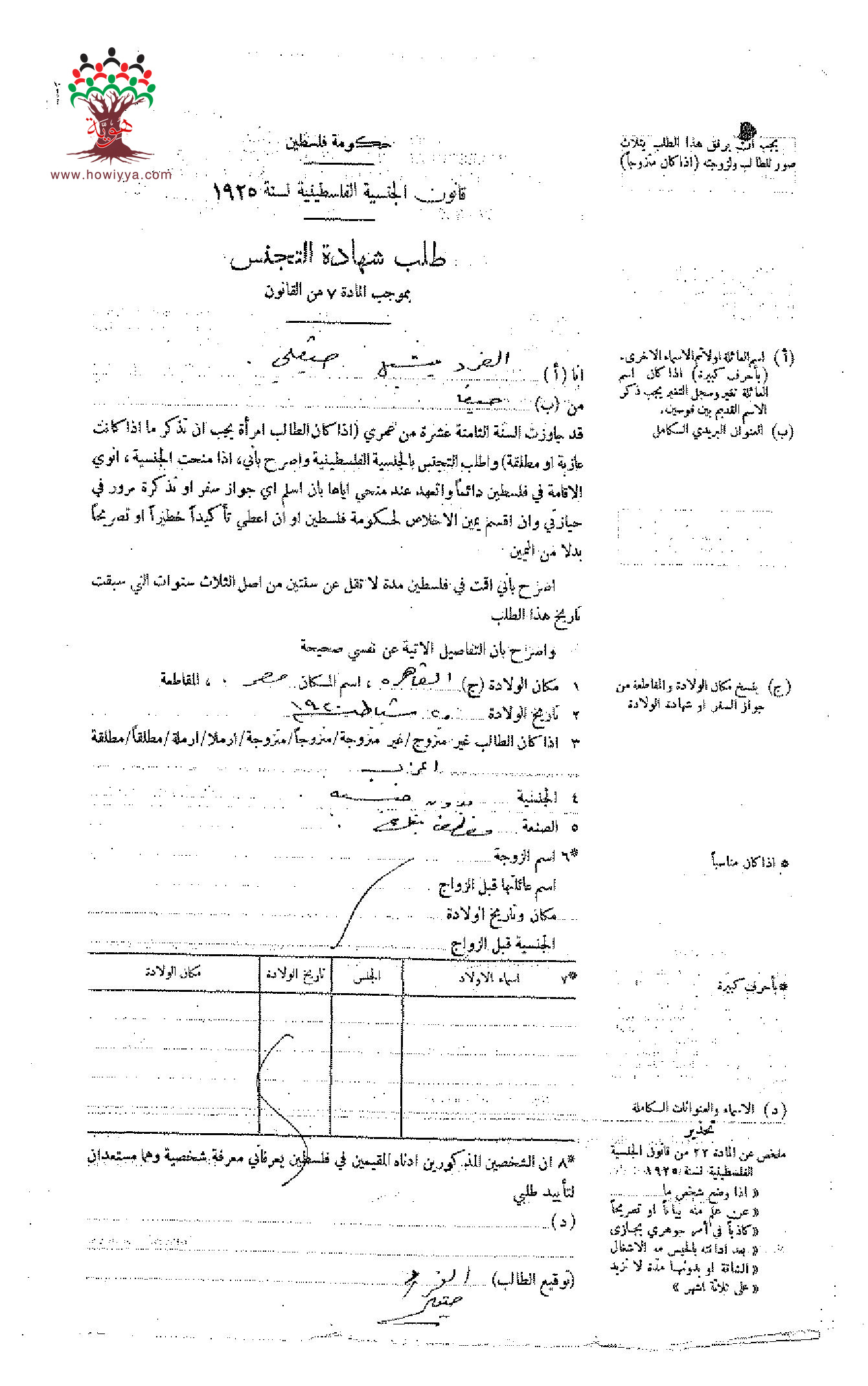 طلب الجنسية الفلسطينية-ألفريد صيقلي-حزبون/القاهرة