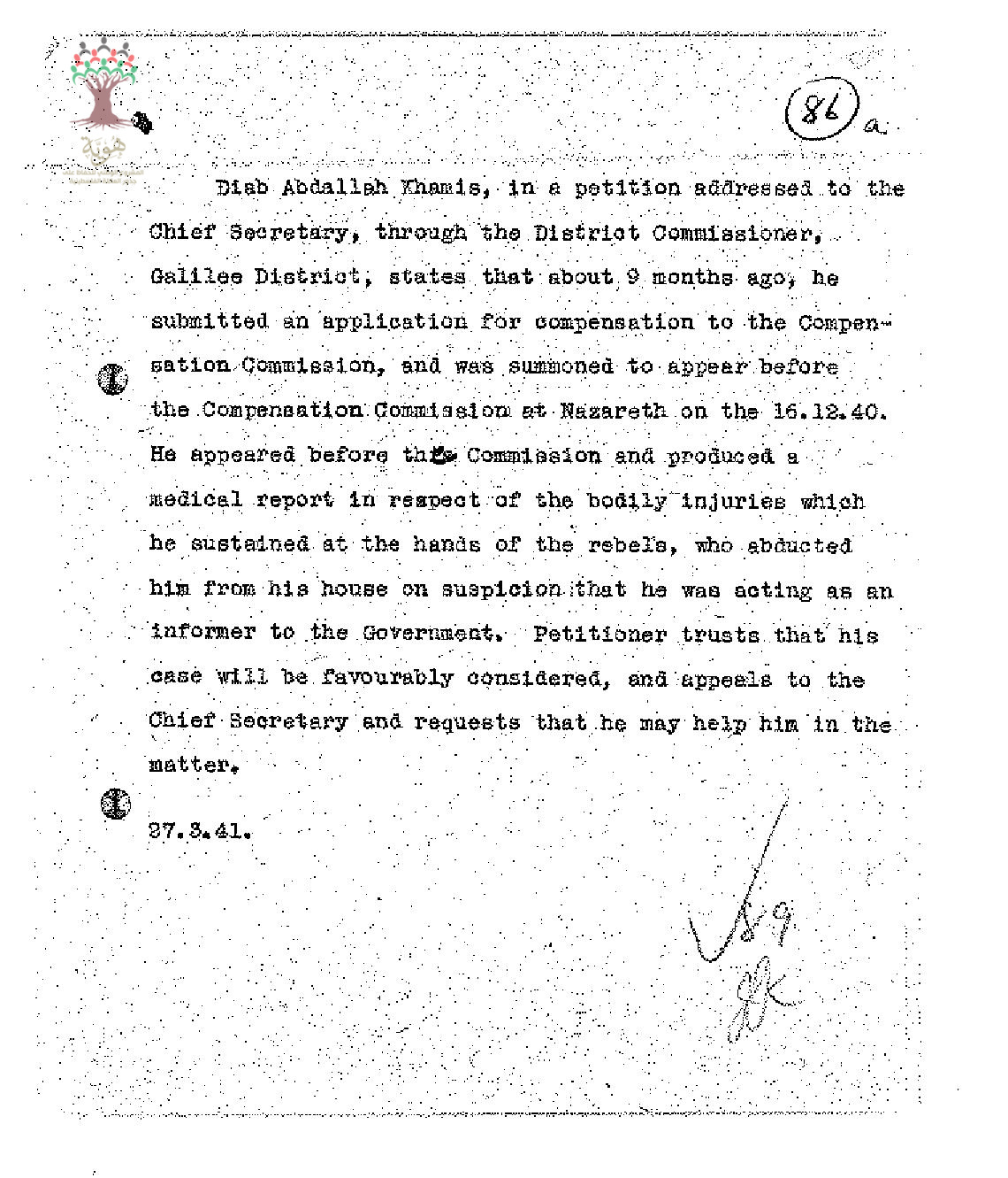 مجموعة رسائل بخصوص طلب تعويض مقدم من دياب خميس