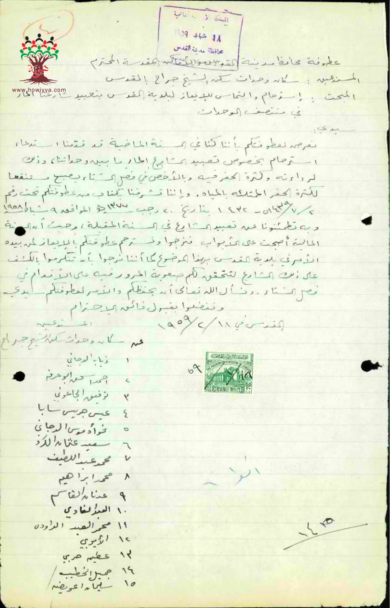 استرحام مقدم من سكان وحدات حي الشيخ جراح الى محافظ مدينة القدس يطلبون فيها تعبيد الشارع