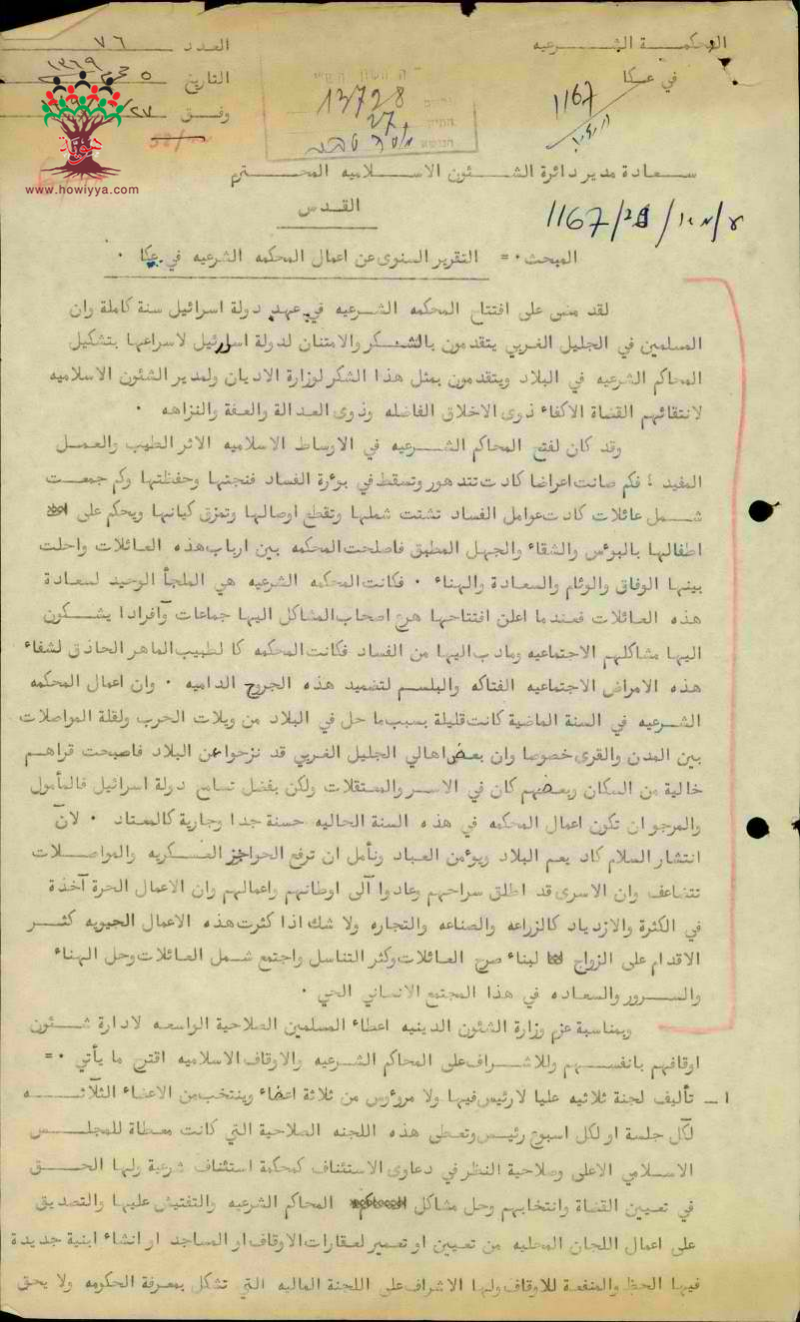 التقرير السنوي عن أعمال المحكمة الشرعية في عكا